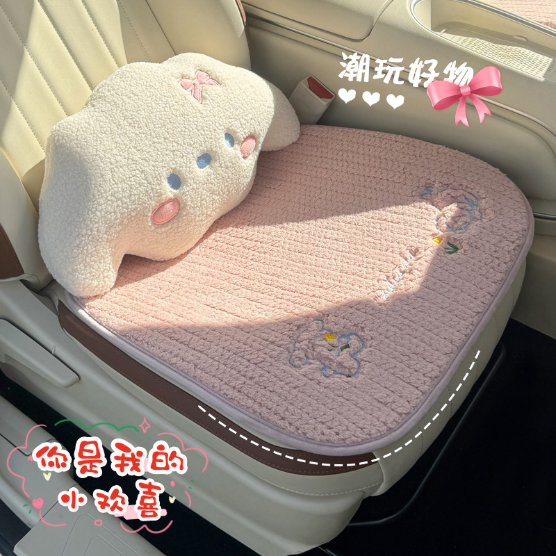卡通可爱汽车坐垫女士车内半包座椅套冬季毛绒保暖车防滑座垫批发
