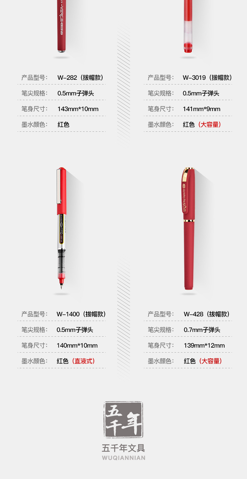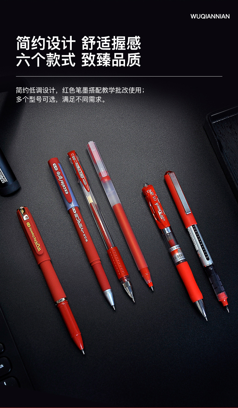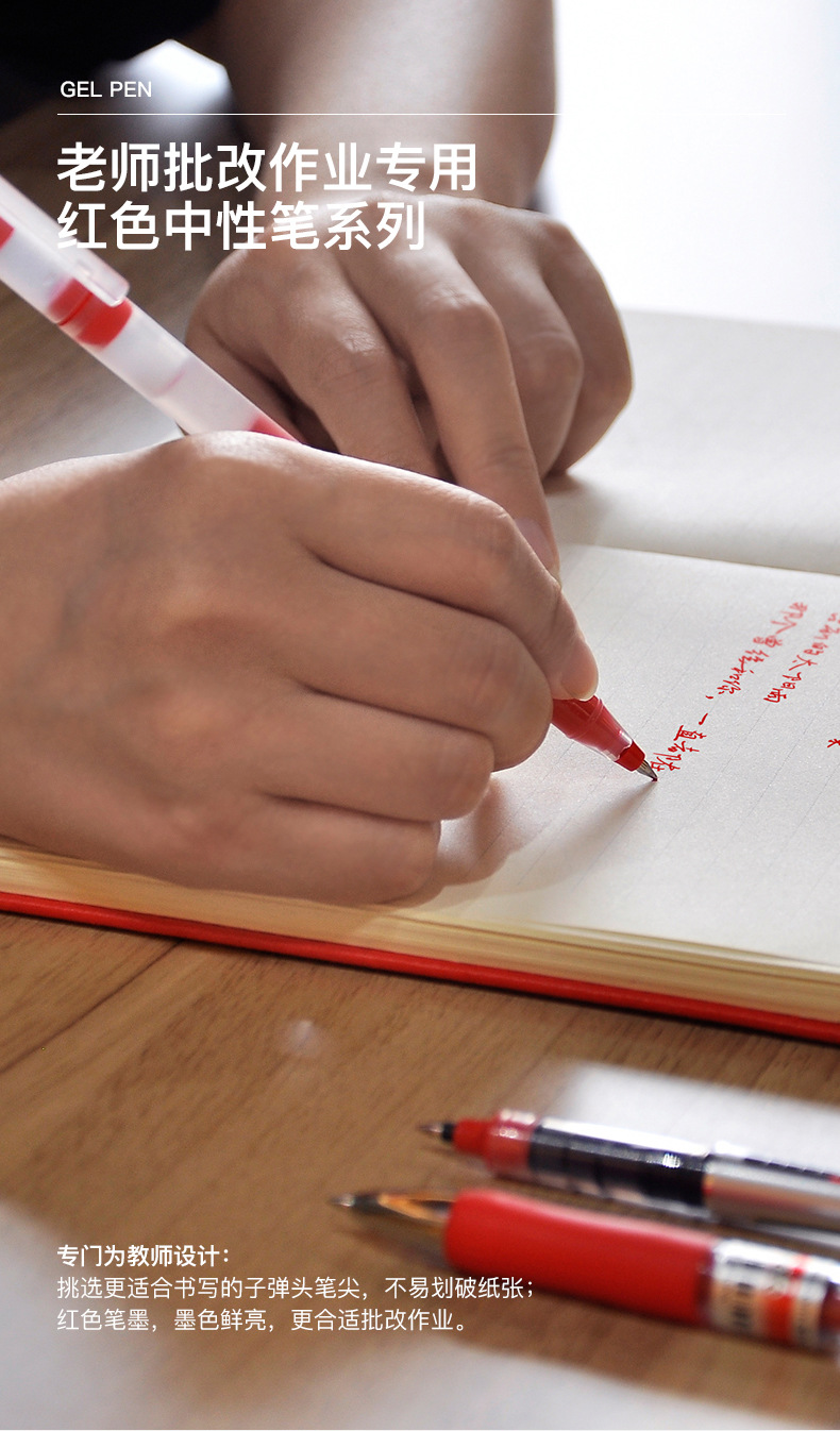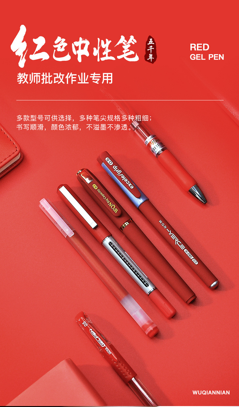 五千年紅筆0.7mmサインペン0.5mm押し中性筆直液式先生専用添削作業ペン