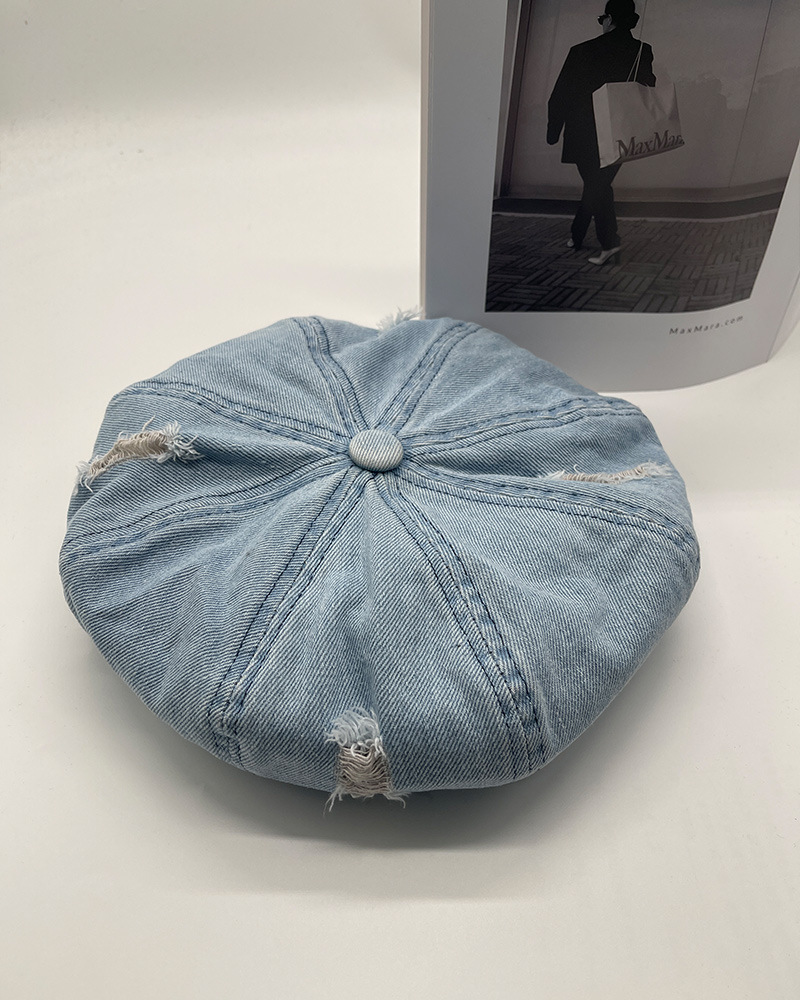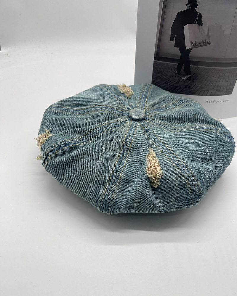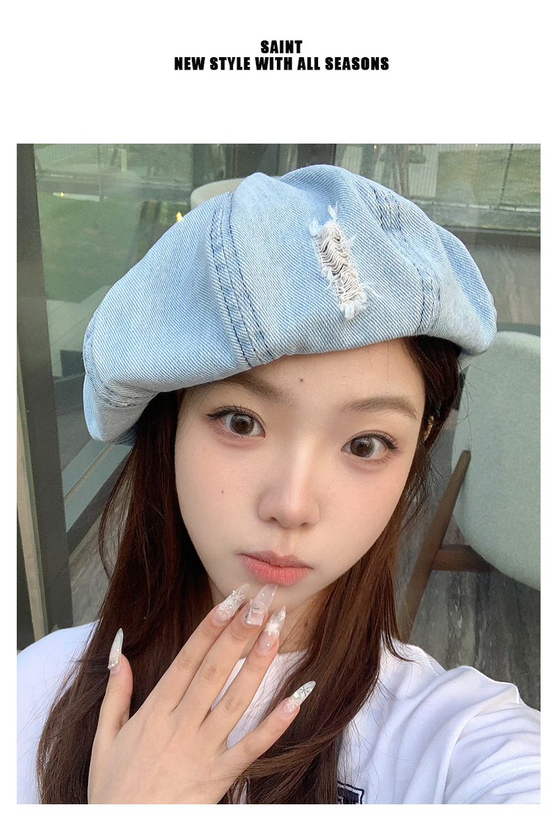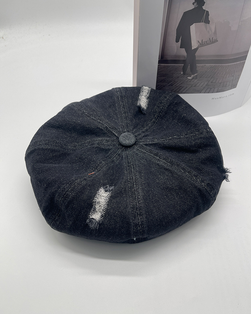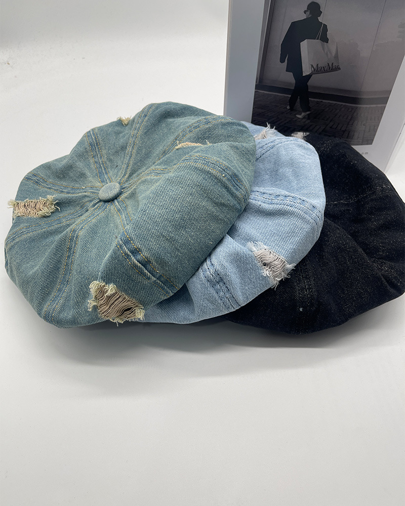 2024新型カウボーイ破洞ベレー帽女子春秋百合画家帽レトロ水洗い古い八角帽子潮