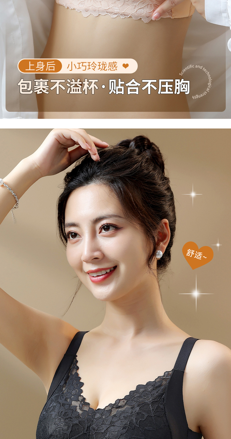 春夏新款蕾丝无痕提拉内衣小胸聚拢上托防下垂粉底液果冻文胸批发