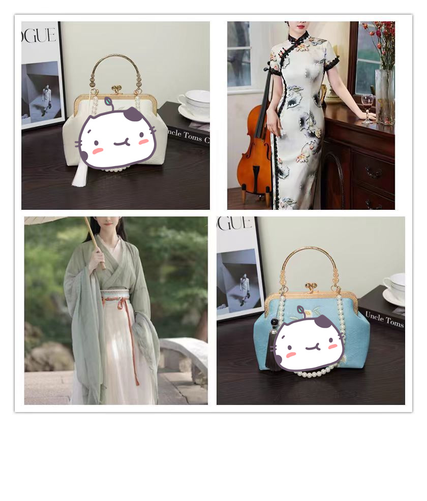 新中式刺绣盘扣国风包包女新款素雅汉服包搭配旗袍马面裙的口金包