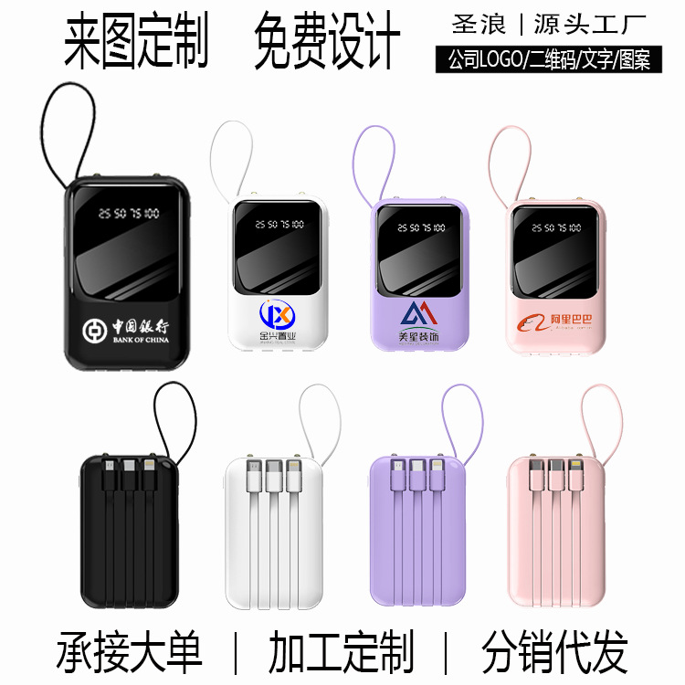 工場卸売りミニ自己帯線充電宝大容量携帯帯移動電源プレゼントカスタムロゴ