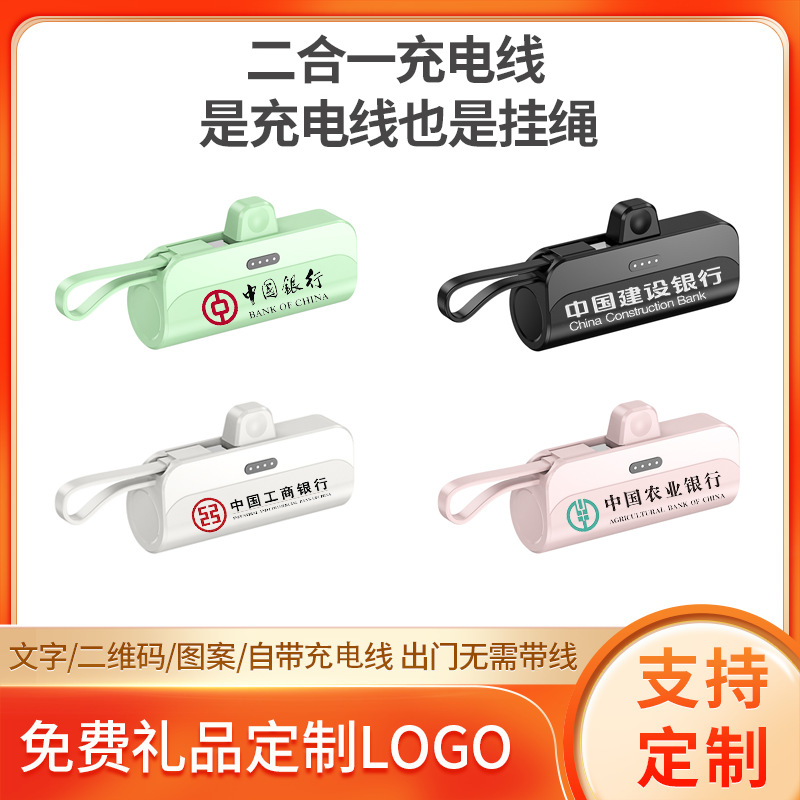 KCクロスボーダーミニカプセル充電宝5000ミリアンペア小型ポータブルケーブル付きモバイル電源カスタムロゴ