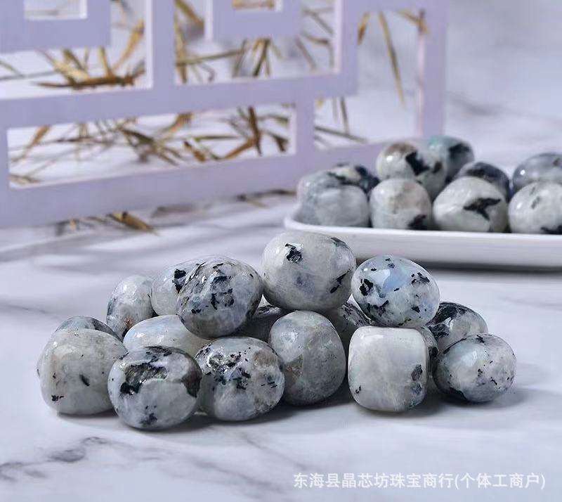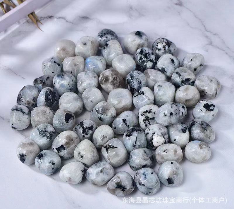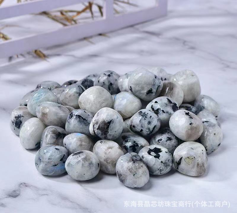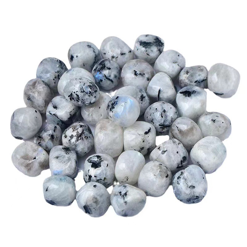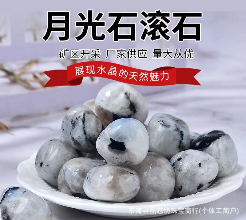 メーカーは天然の青い月の光の石の大きい粒子のローラーの水槽の舗装の水晶の装飾の石の卸売りを供給します。