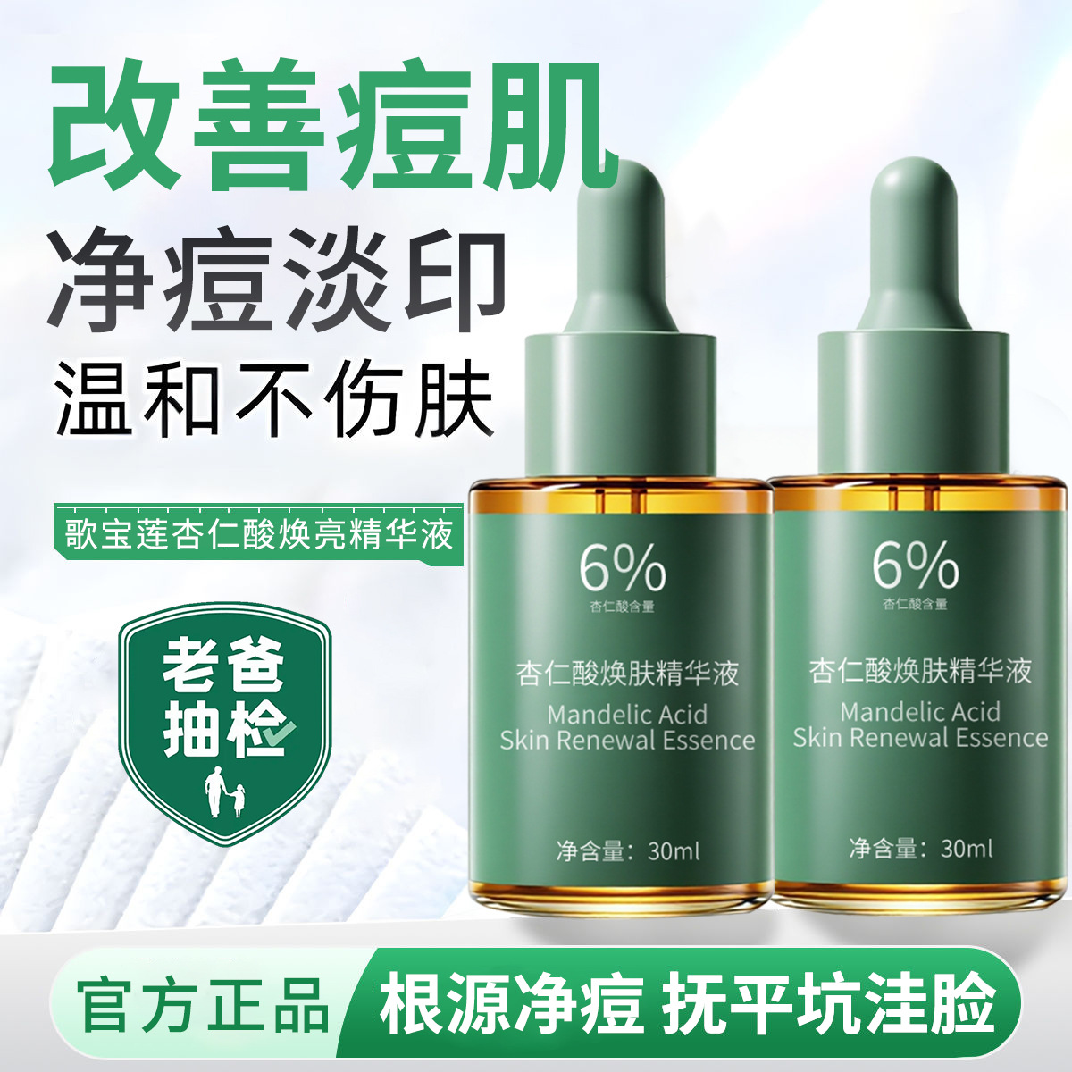 杏仁酸焕肤精华液净痘去角质黑头闭口粉刺黑头提亮淡化痘印果酸液