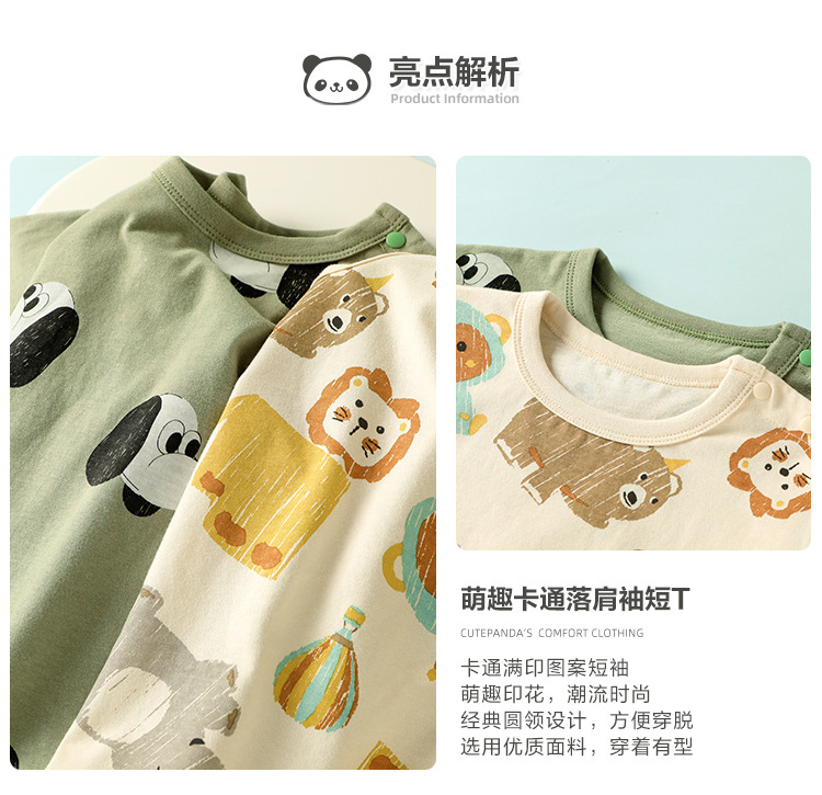 パンダの赤ちゃん服純綿半袖tシャツ夏服男の子と女の子の子供服夏の上着