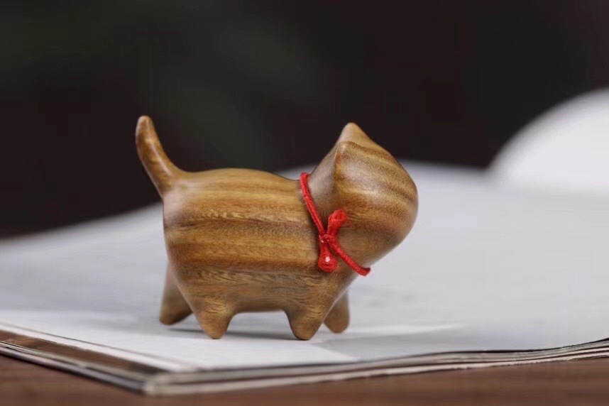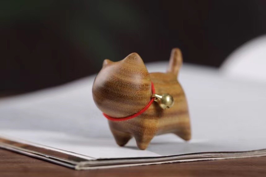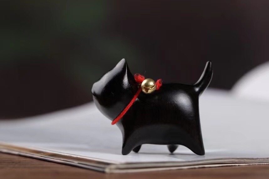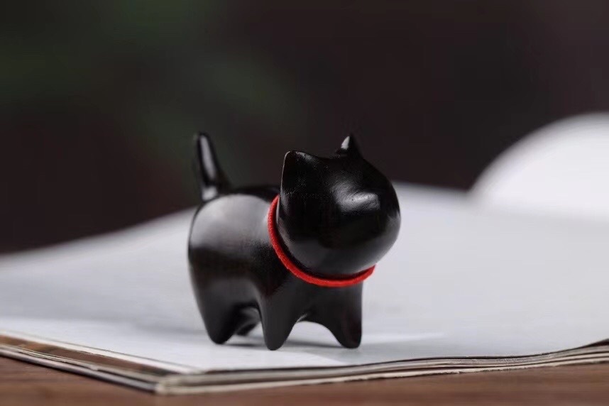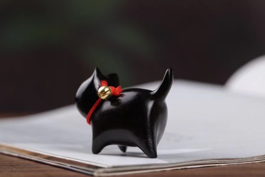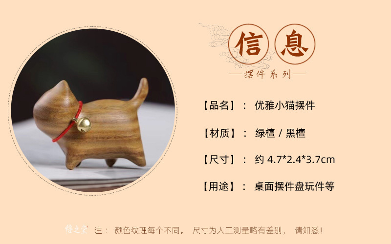 緑檀の小さい猫のデスクトップは文を飾って盤を遊んで手の件の黒檀のかわいい鈴の猫のお茶を遊んで小さい置物をかわいがります。