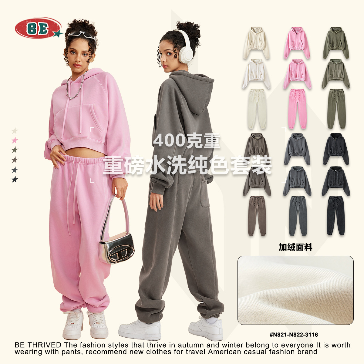 BE女装2025冬アメリカンレトロギャル風ショートスポーツフード付きハイウエストコルセット2点セット