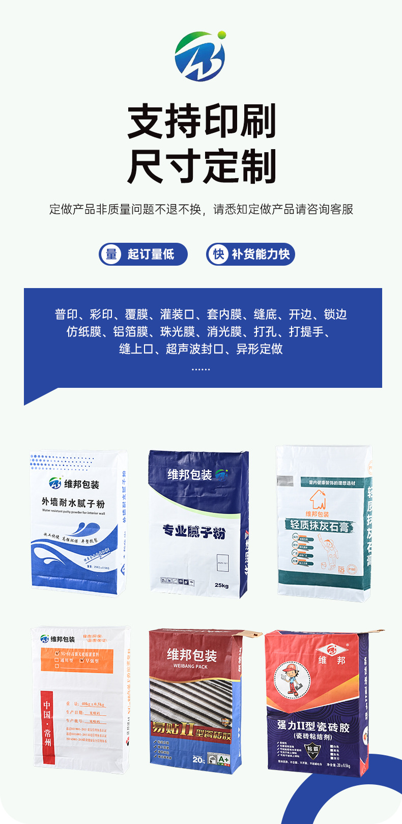 セメントモルタル磁器レンガゴム包装袋オーダーメイドパターン寸法スクエアカラー印刷バルブポケットパテ粉包装袋