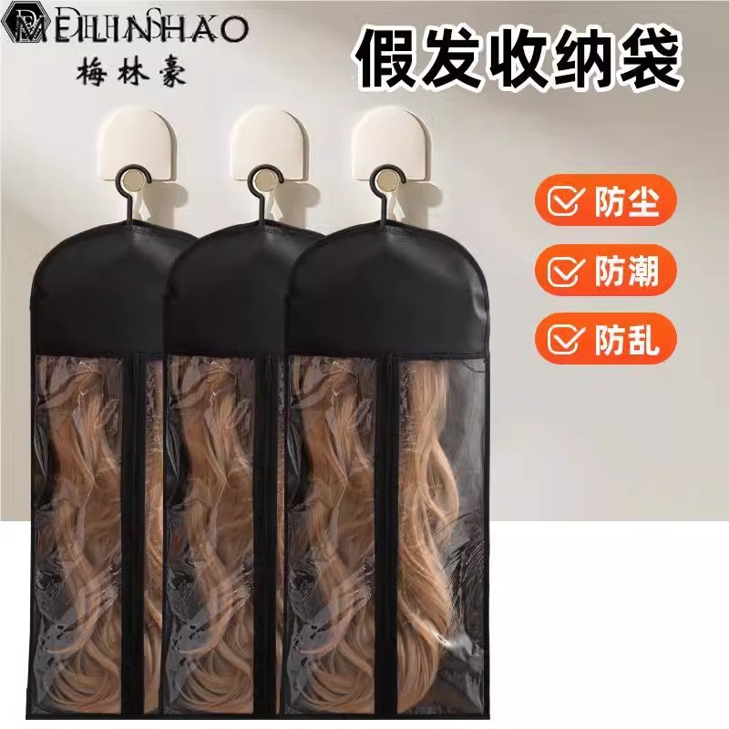 假发收纳袋卧室挂式衣物假发防尘收纳挂架可视防水布艺假发防尘罩
