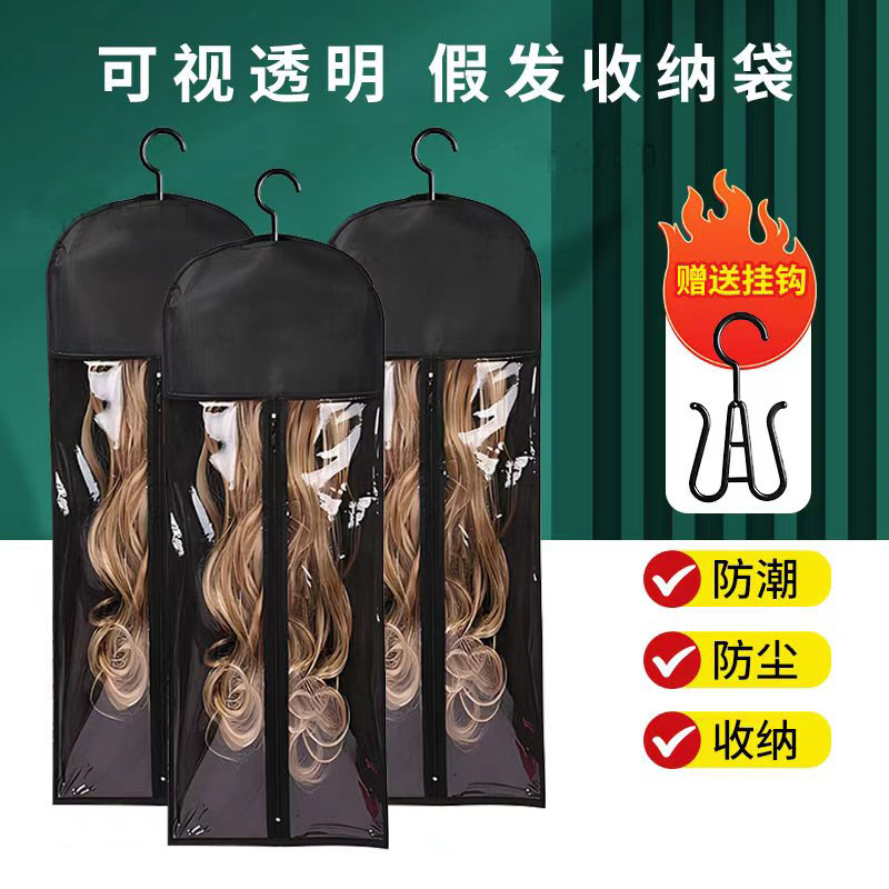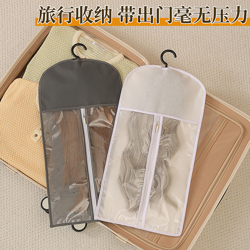 跨境外贸 无纺布假发收纳袋 PEVA可视防水假发挂袋悬挂展示收纳套