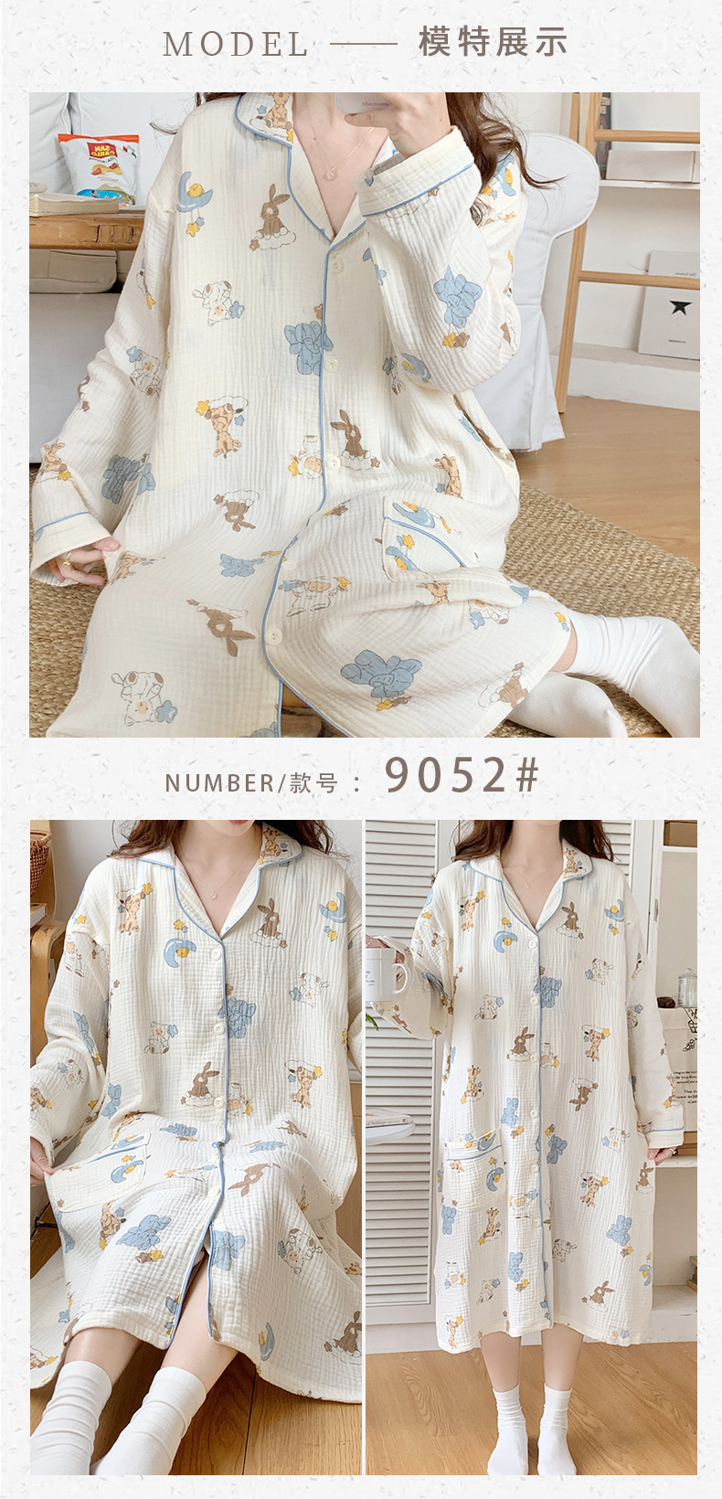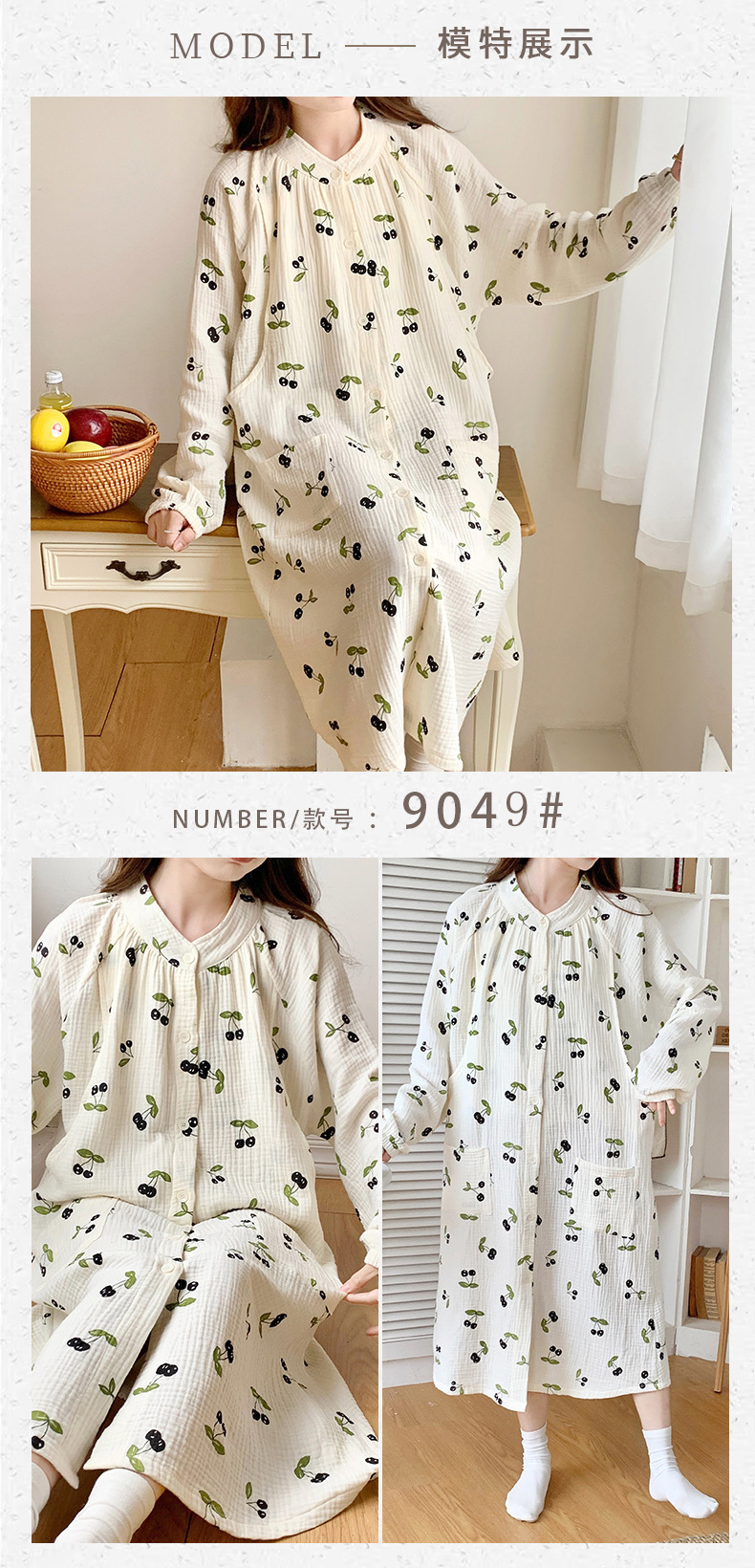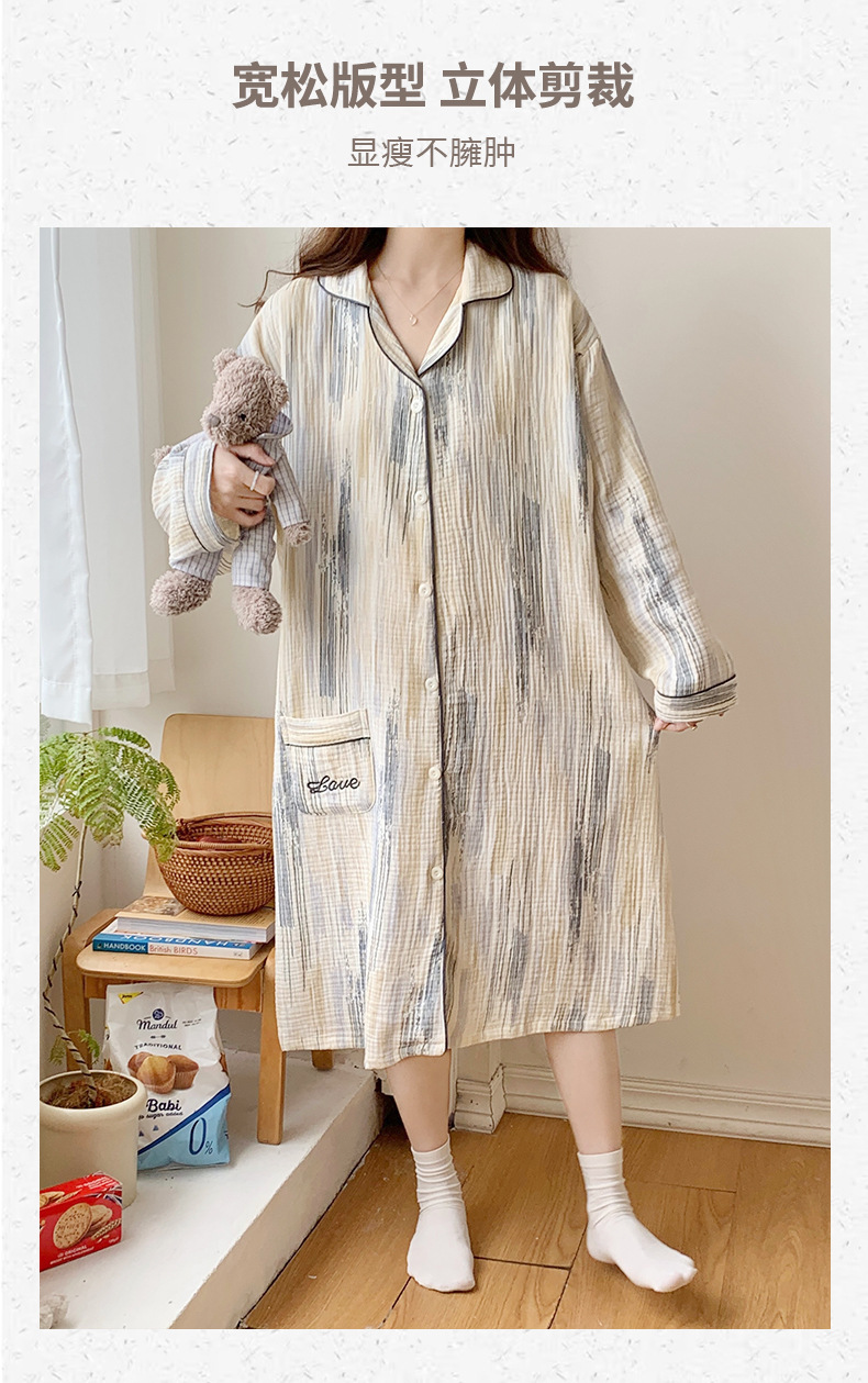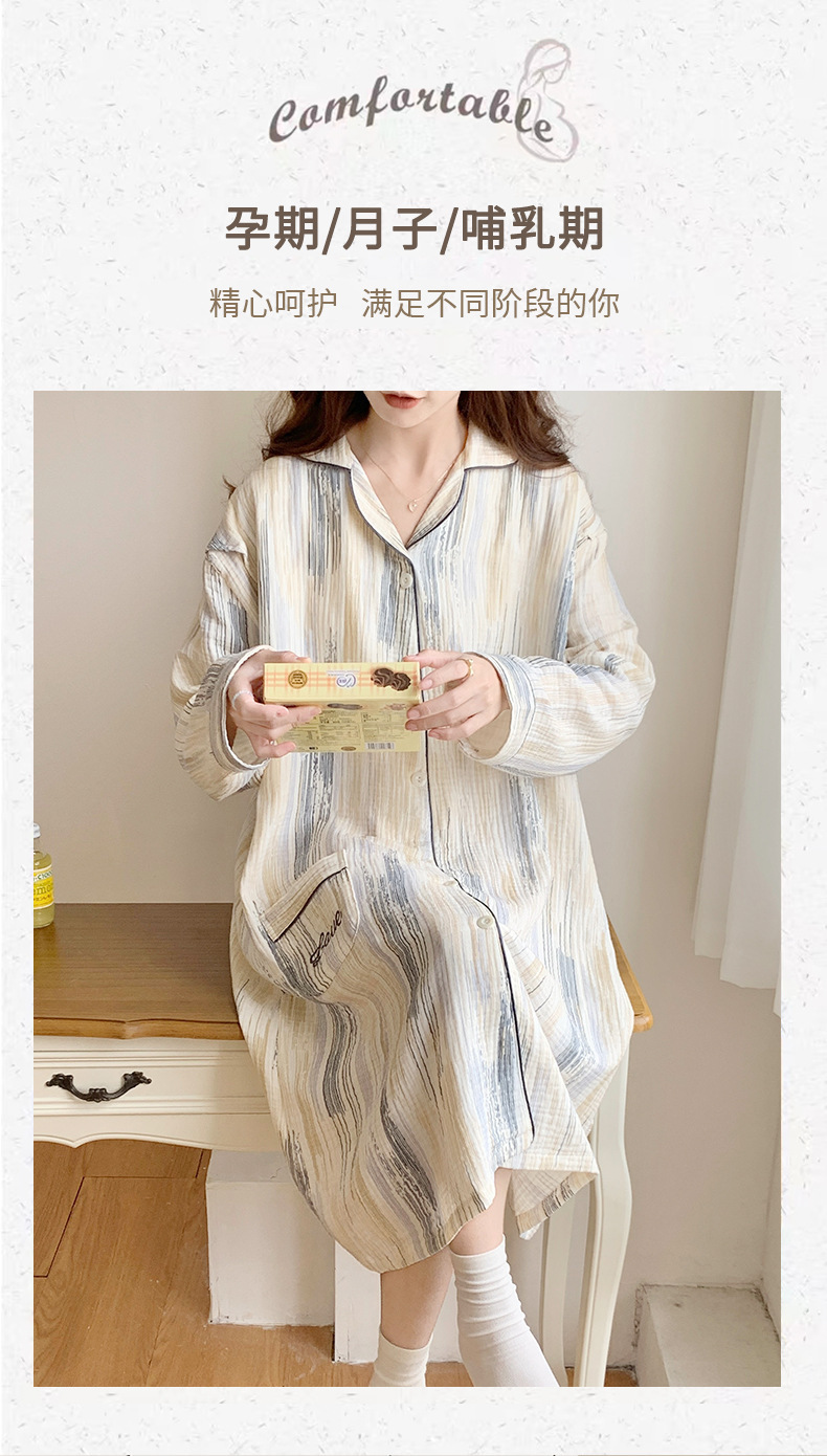 2024ガーゼ授乳スカート夏の薄い綿の妊娠期妊婦パジャマ長袖産婦授乳月子スカート