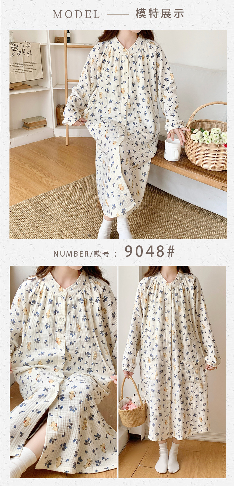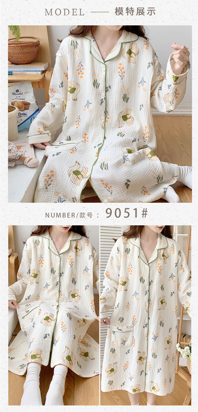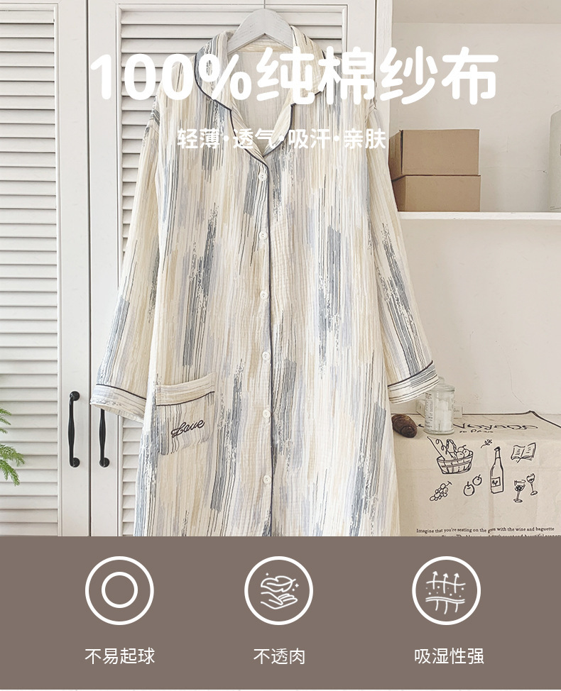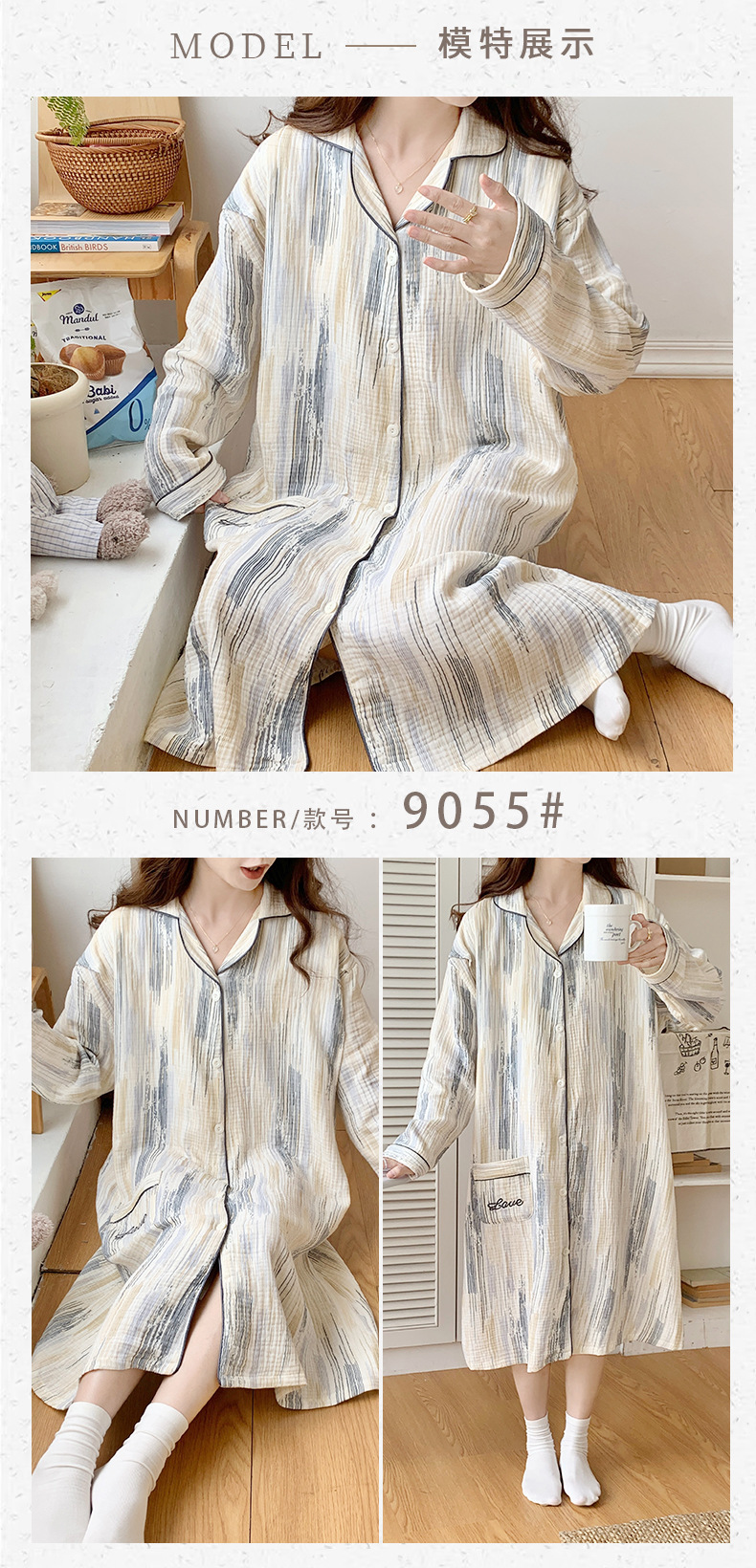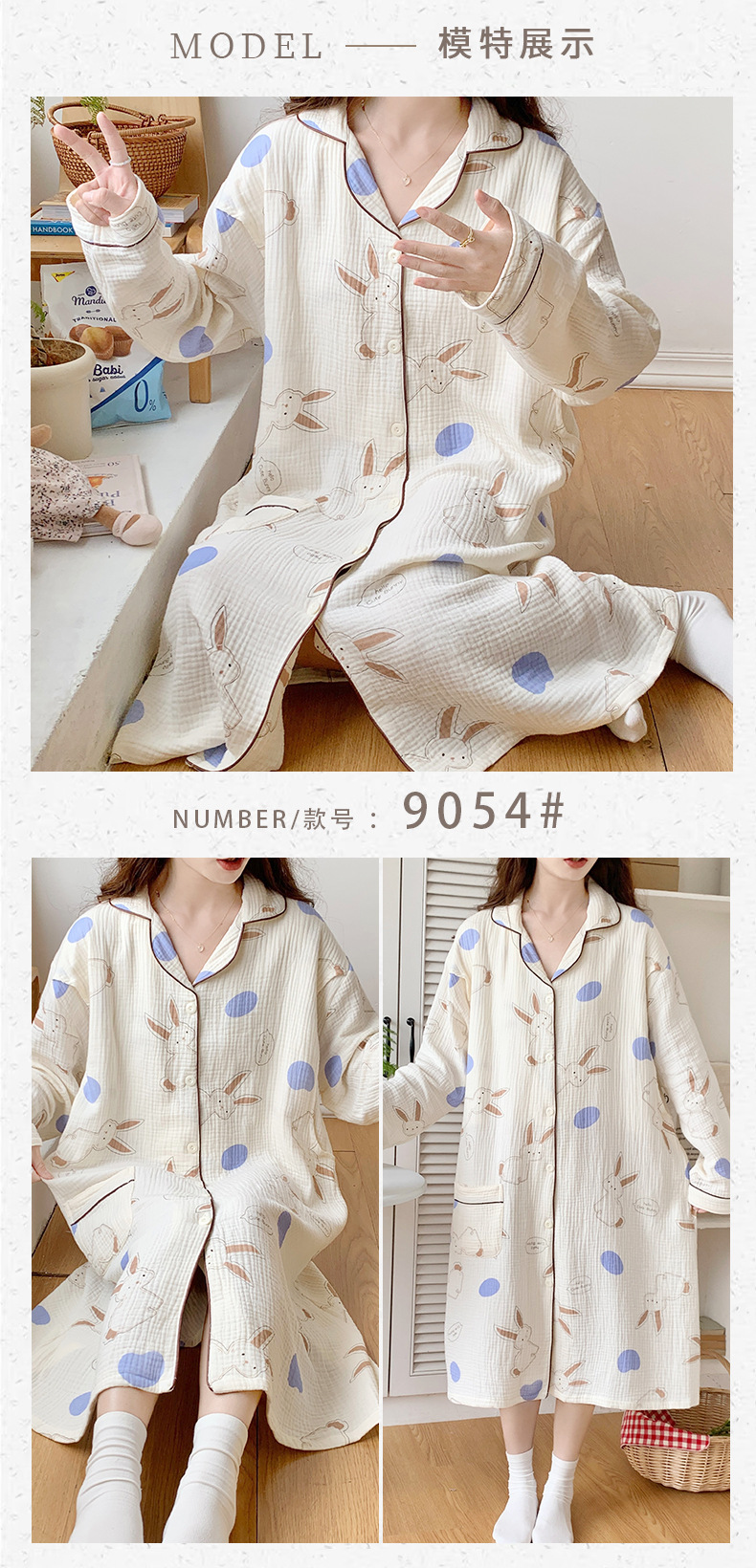 2024ガーゼ授乳スカート夏の薄い綿の妊娠期妊婦パジャマ長袖産婦授乳月子スカート