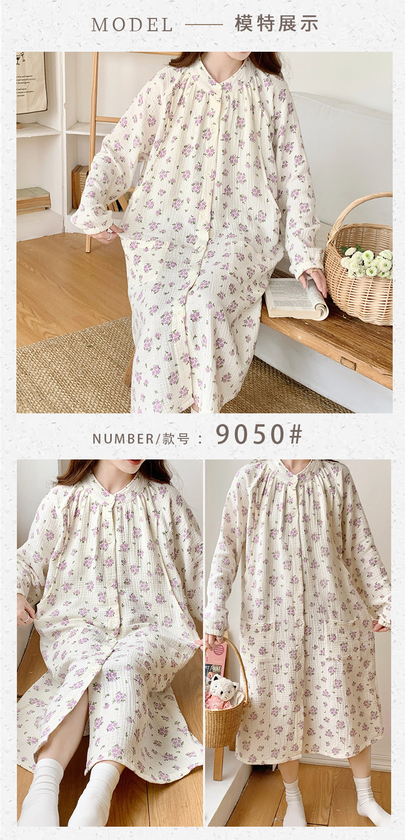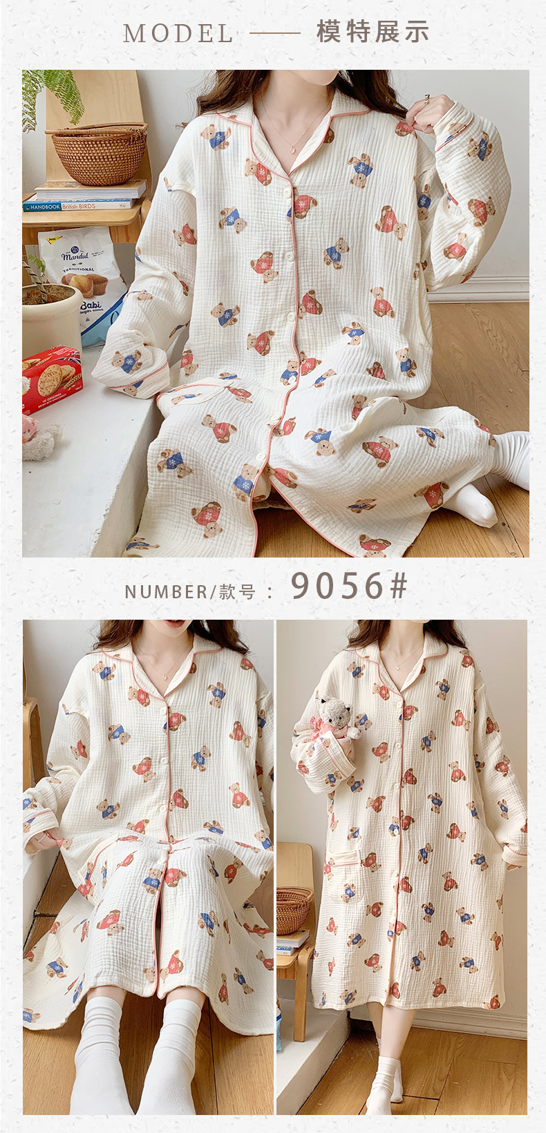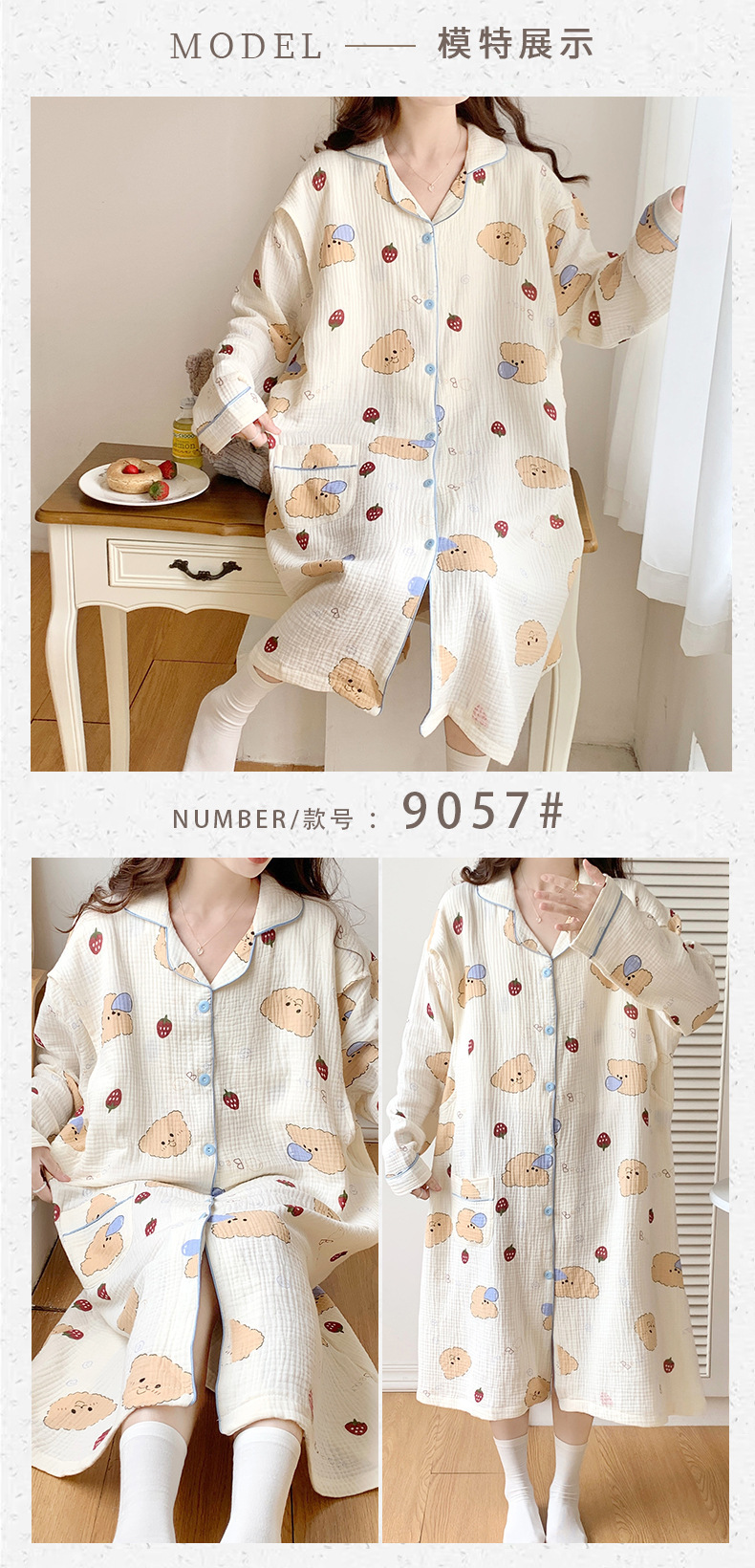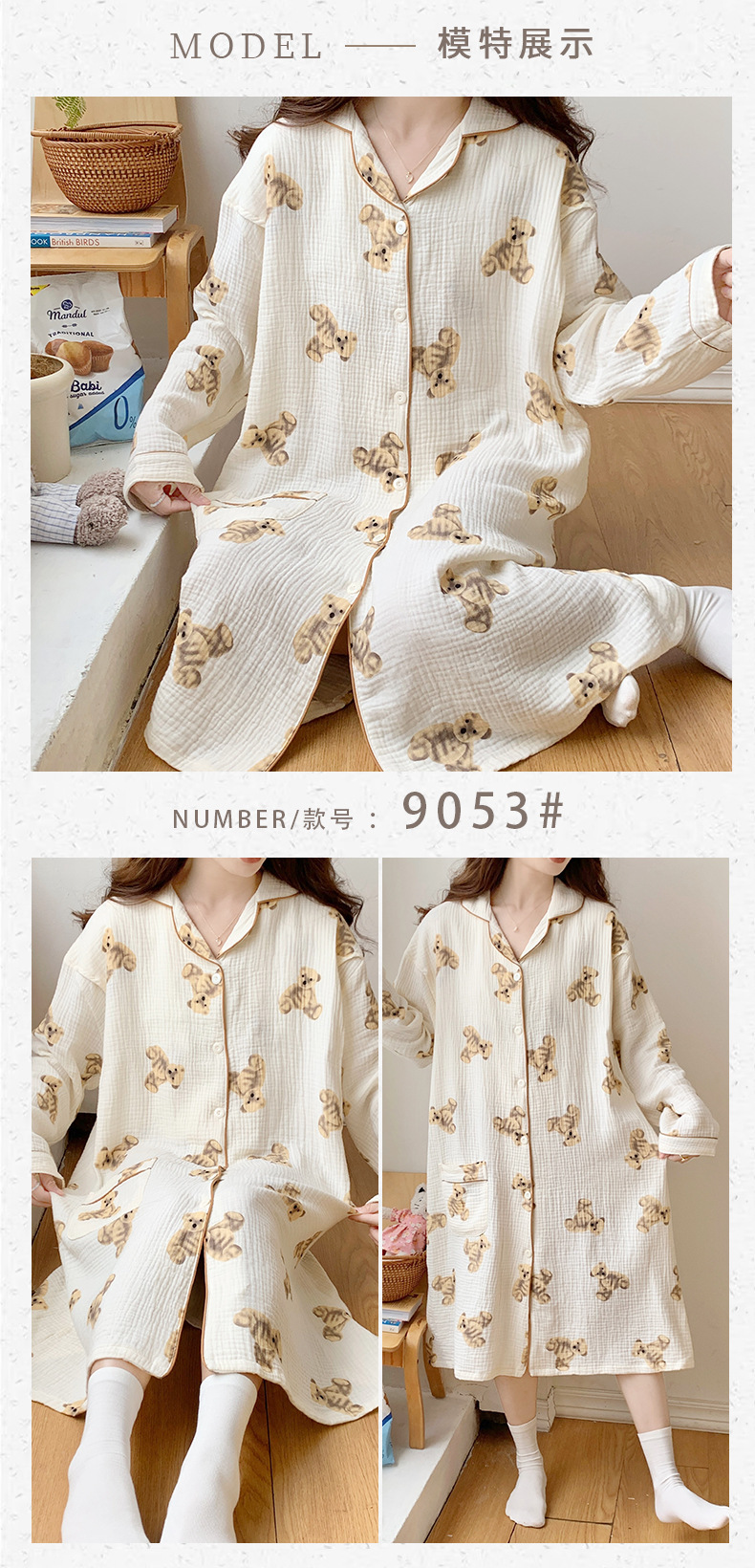 2024ガーゼ授乳スカート夏の薄い綿の妊娠期妊婦パジャマ長袖産婦授乳月子スカート