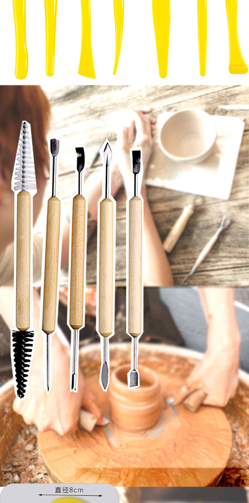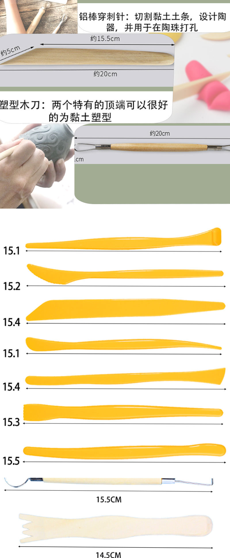 カラー 陶泥道具5点セット,陶泥道具6点セット,陶泥道具7点セット,陶泥道具8点セット,陶泥道具11点セット