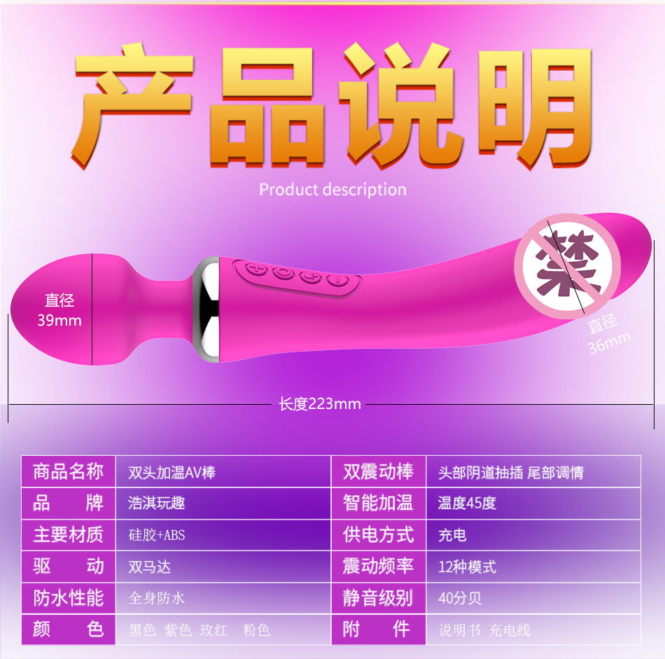 大人の情緒用品のダブルヘッドの加温AV棒の女性用の調子の自慰器具の性のおもちゃのマッサージ棒の対外貿易の卸売り