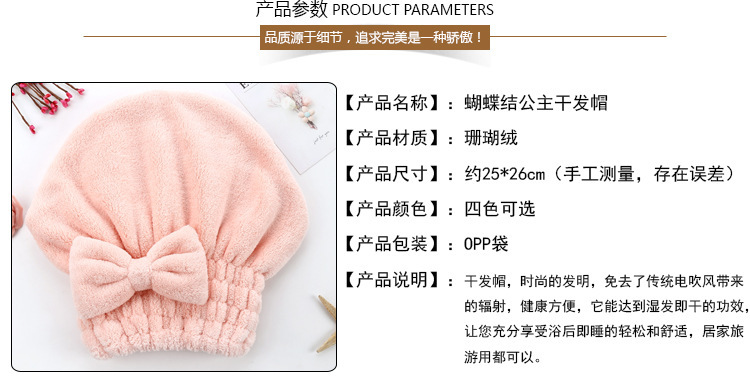 リボンコーラルベルベットプリンセスハット厚みのあるヘアドライキャップロングベルベットシャワーキャップ吸水速乾タオルターバン卸売