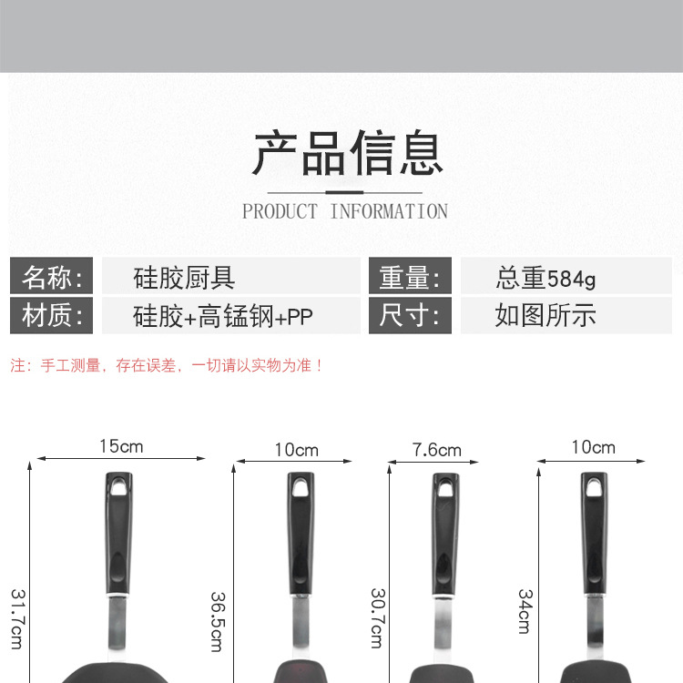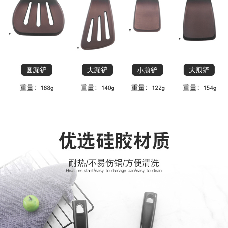 硅胶弹簧钢煎铲鱼铲牛扒铲漏铲铁板烧料理铲锅铲煎饼铲4件套