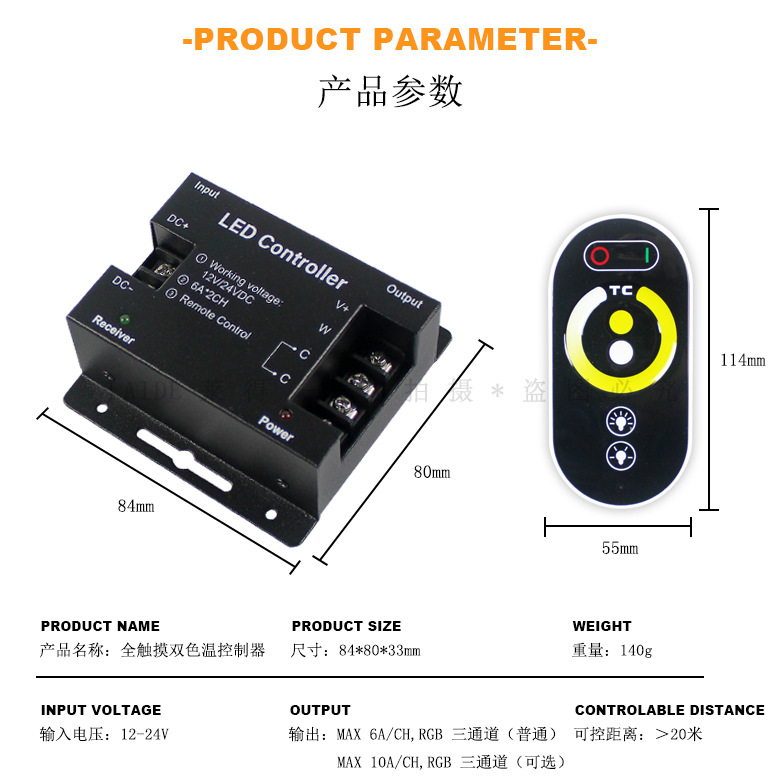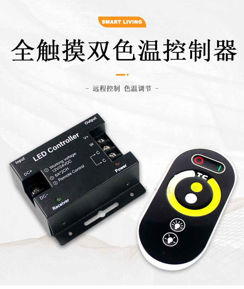 DC12V24V タッチコントローラー デュアルカラー温度 12Aled ライトストリップ ワイヤレス RF タッチリモコン 色温度調整調光器