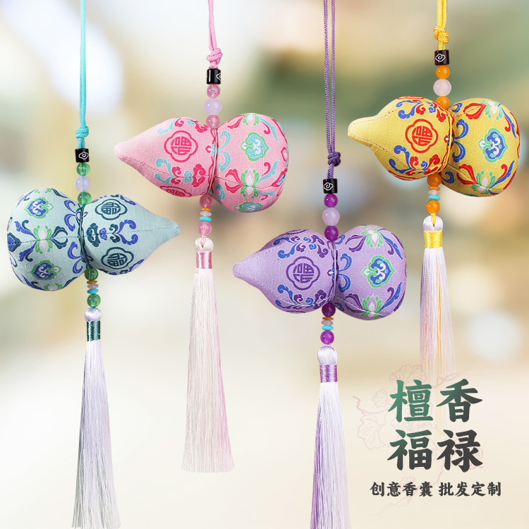 レトロアンティークサシェギフトカー福袋ペンダント平和チャームひょうたんペンダントサシェ刺繍サシェポータブル