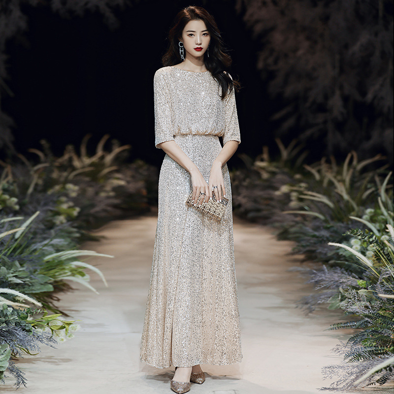 スパンコールイブニングドレス女性のための 2025 新しい冬の気質ホストドレス会社年次総会パーティー宴会ドレス