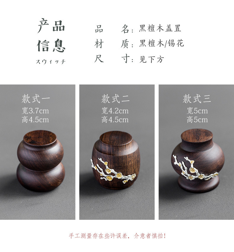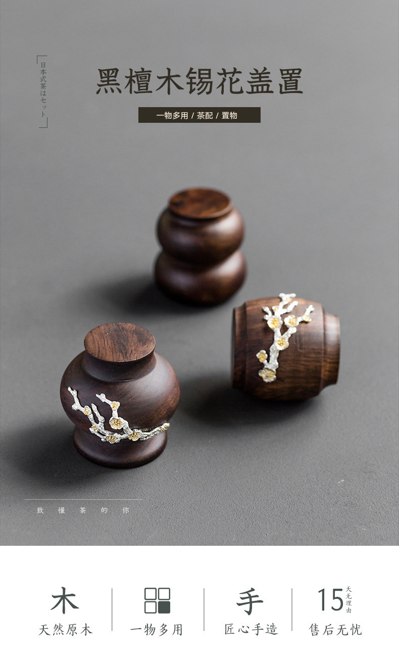 日本式の手作りの錫の工夫の茶器のテーブルの置物の黒檀の木の蓋はお茶のペットの部品のティーポットの蓋の蓋のブラケットを置きます。