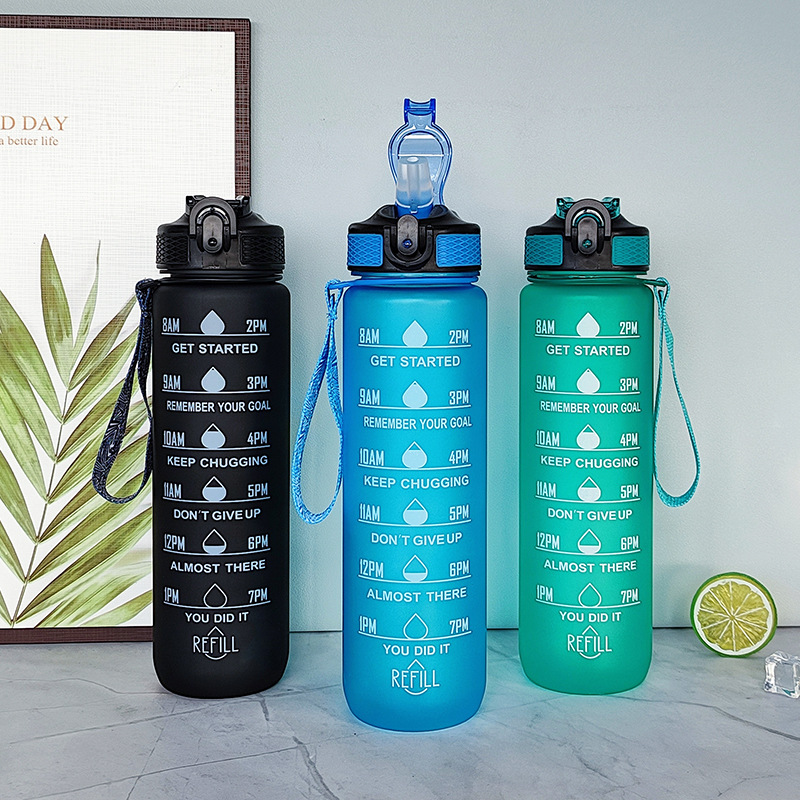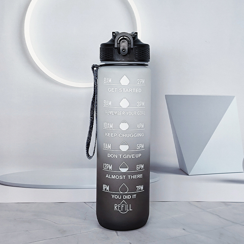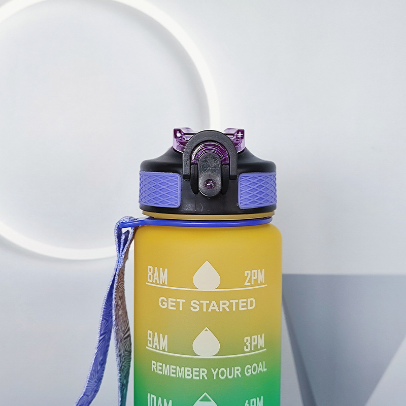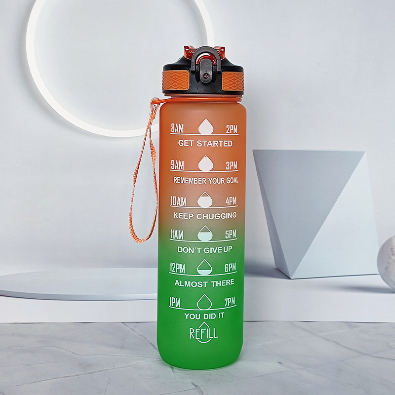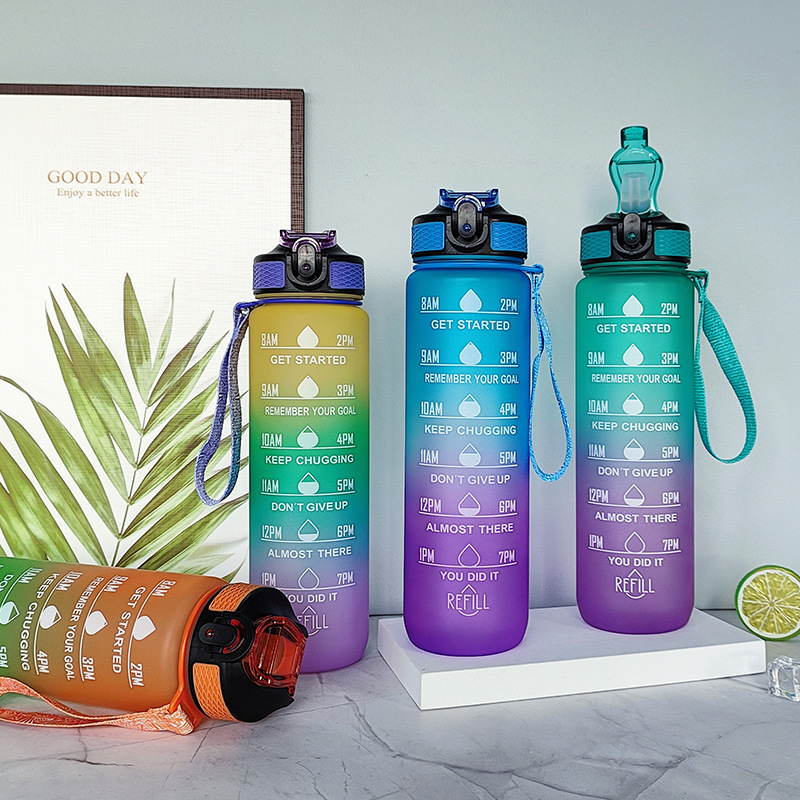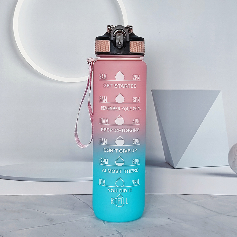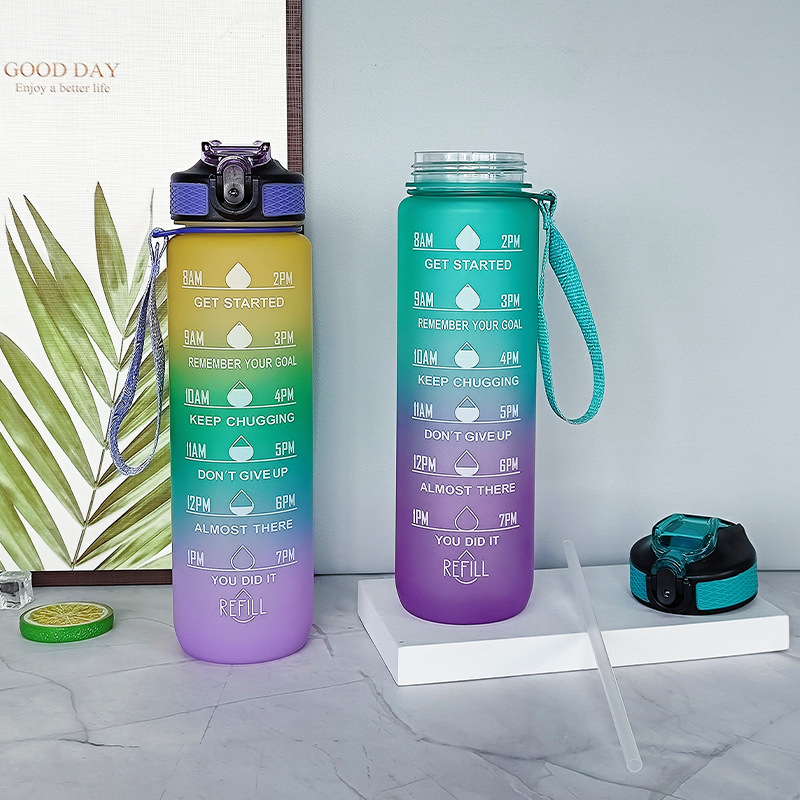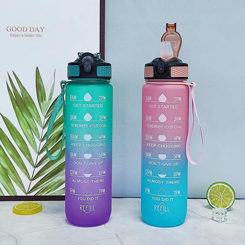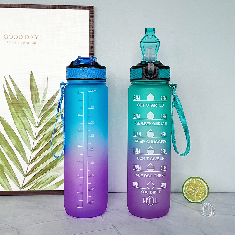 クロスボーダー 1000 ミリリットル大容量スポーツスペースカップケトルグラデーションカラーつや消しプラスチックカップストローカップ