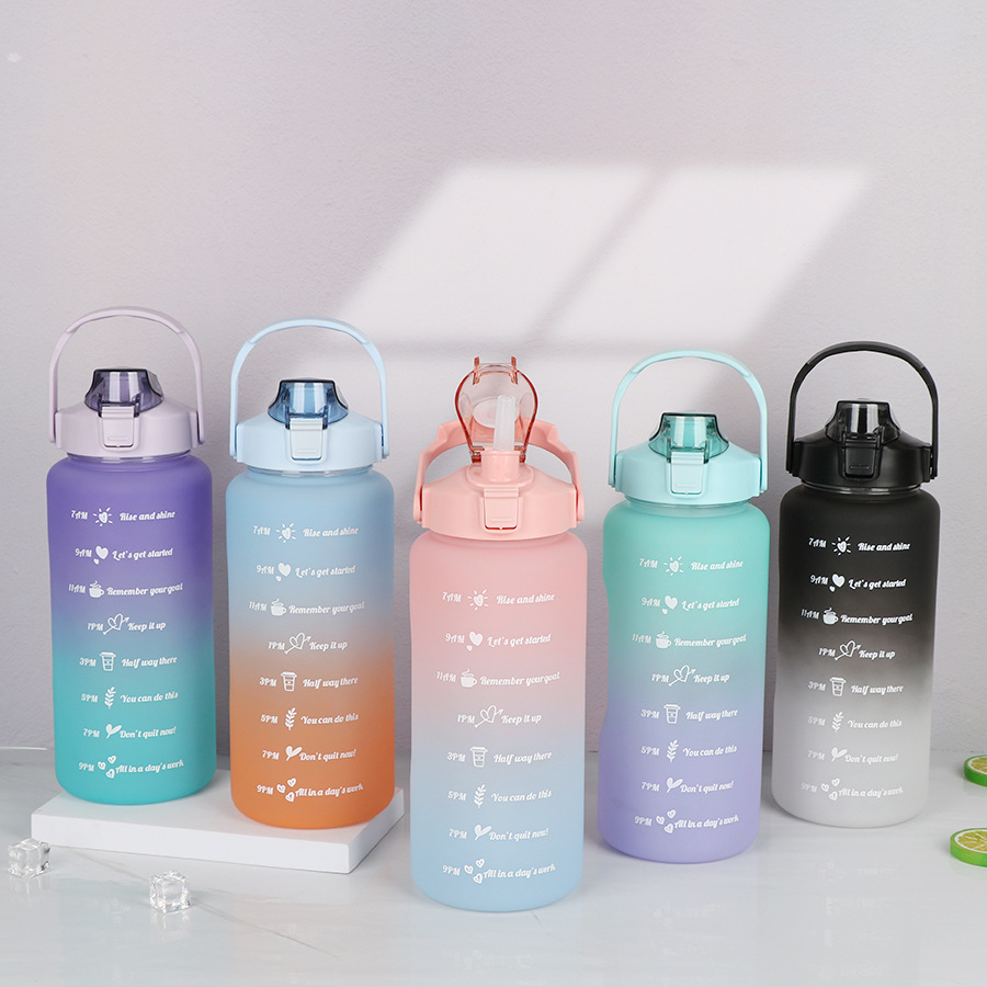 国境を越えたアマゾングラデーション大容量コップ屋外運動フロスト携帯2000mlストロープラスチックカップ