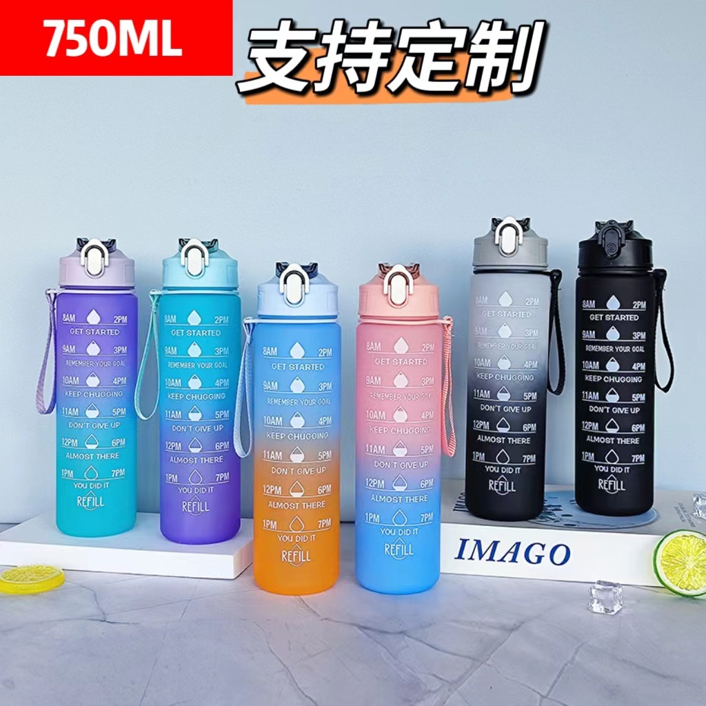 クロスボーダーグラデーション水カップ750mlプラスチック夏フロストフィットネススポーツ水筒800ml宇宙カップ