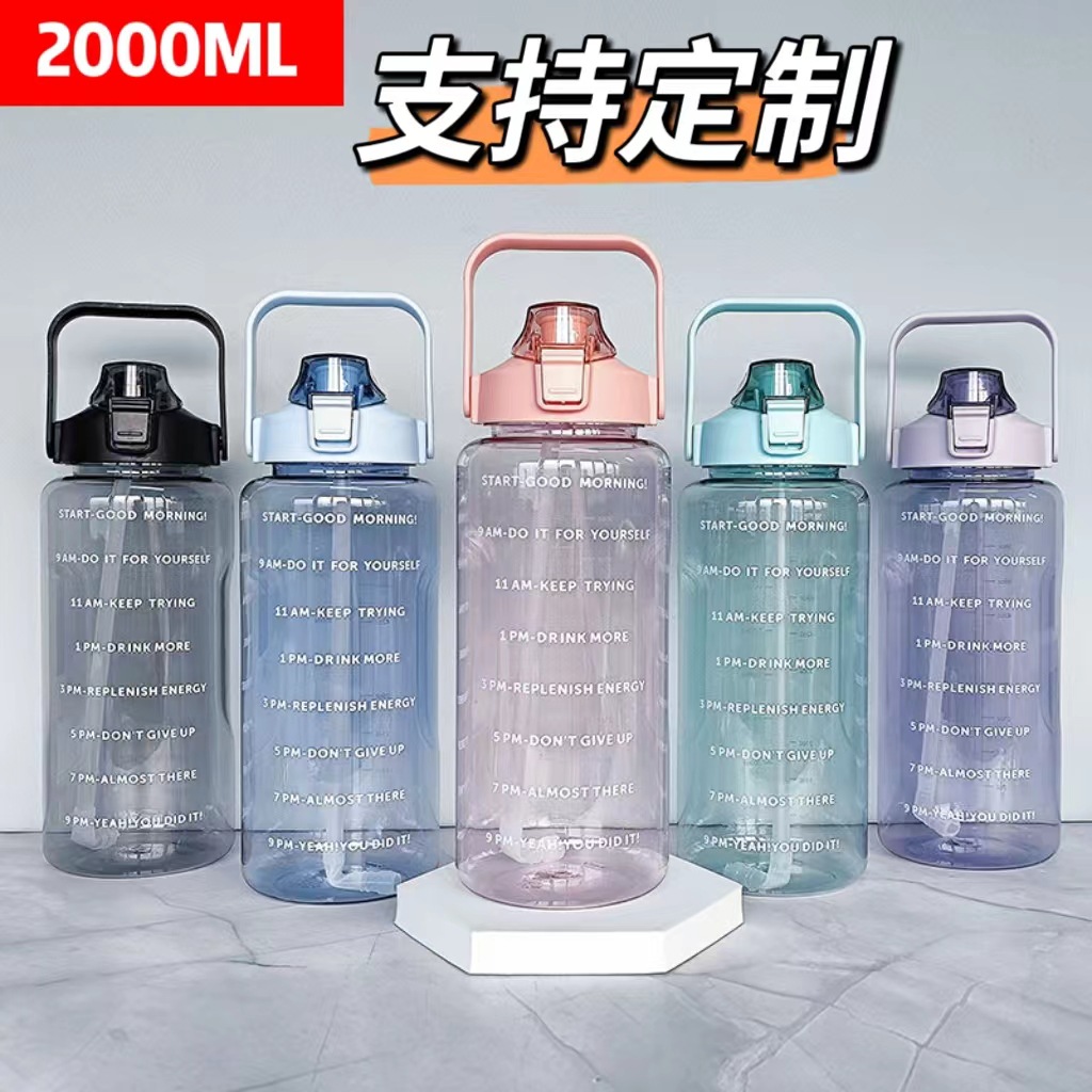 定制大容量2000ml太空杯透明塑料水杯便携式吸管户外运动健身水壶