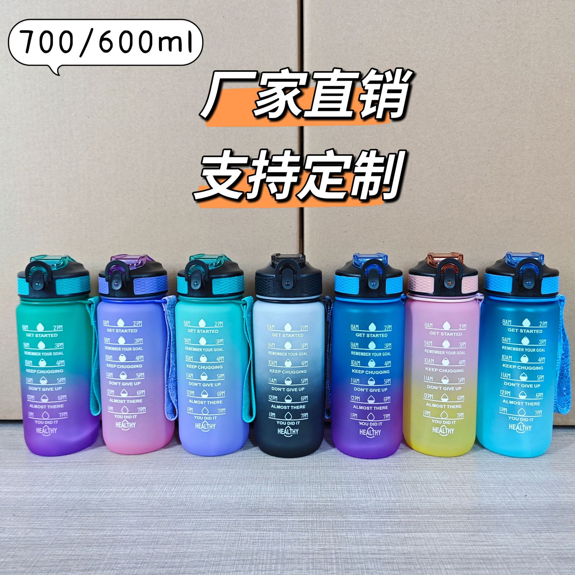 700ml夏越境アウトドアスポーツ宇宙水筒600mlグラデーション色プラスチックカップ携帯ストローコップ