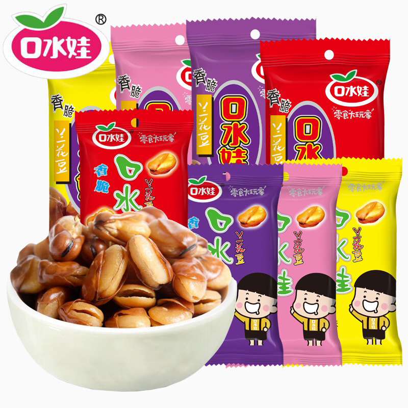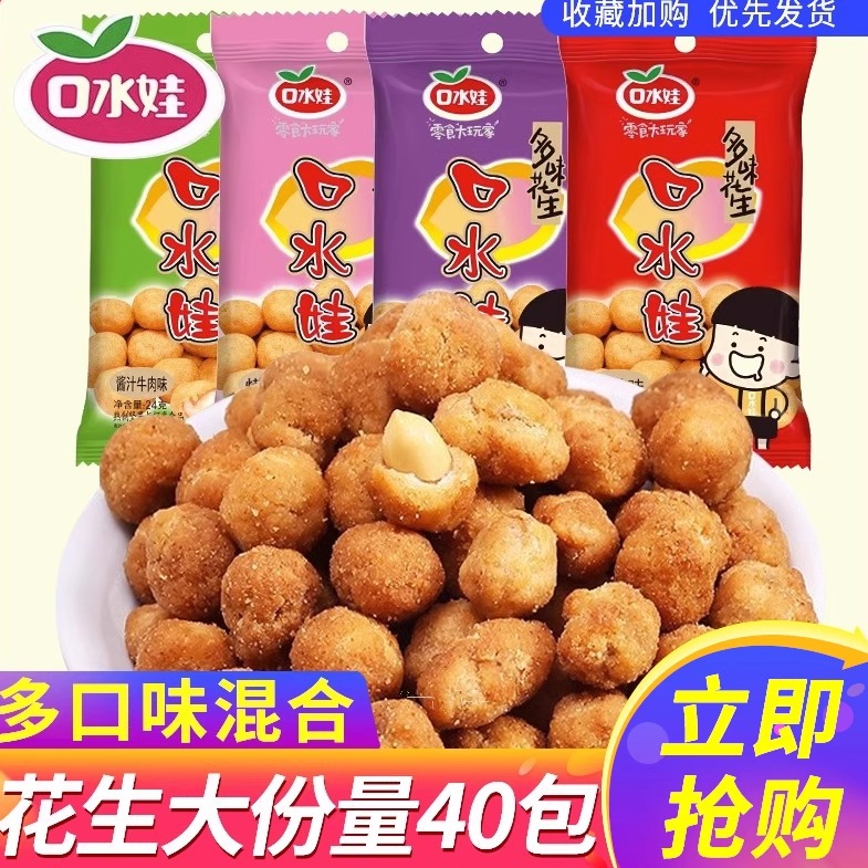 口水娃多味花生50g*10袋裹衣花生香辣味休闲零食品小吃批发五香
