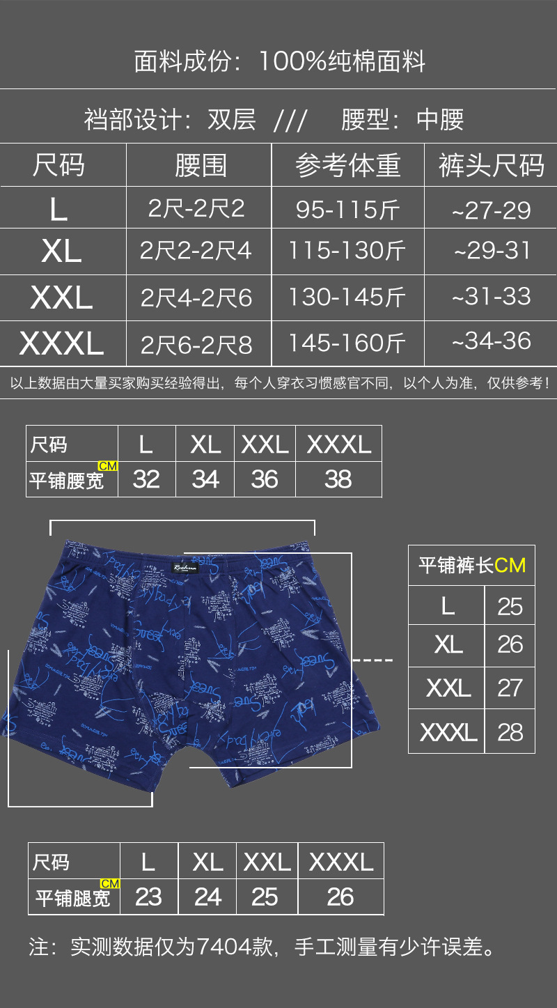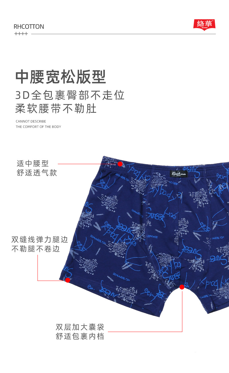 絡華青年下着男平角純綿質通気中腰ゆったり快適四角ズボン頭ケース代件