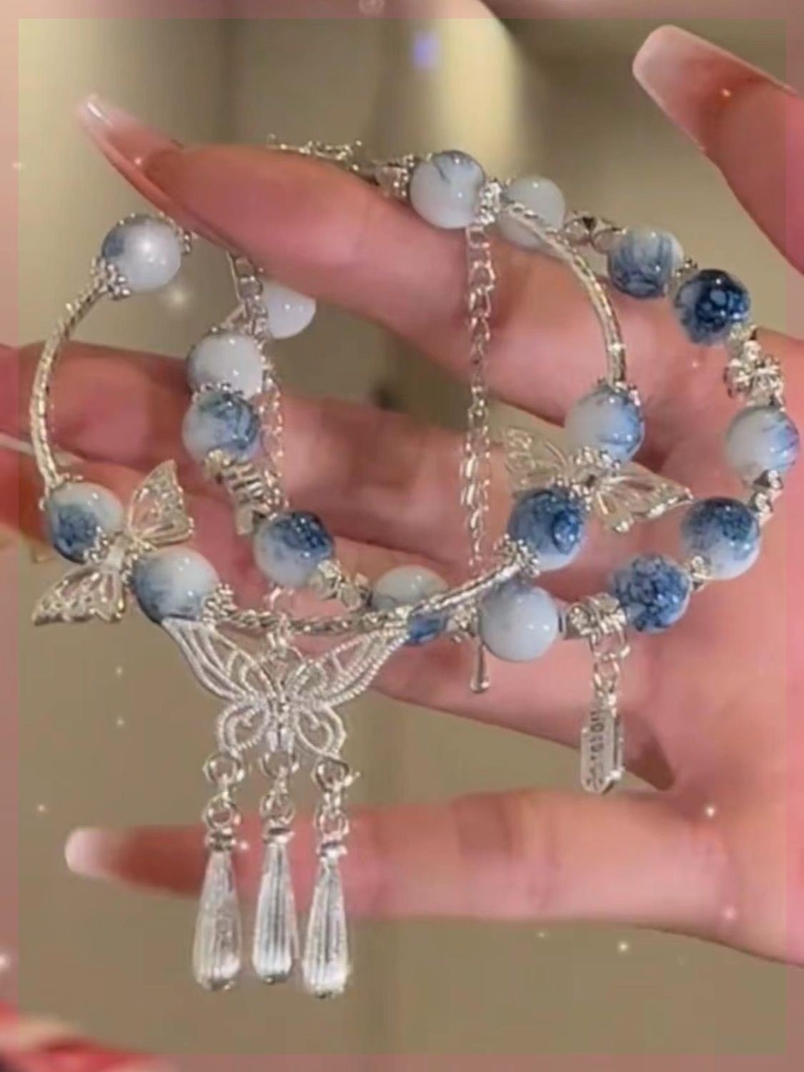 カラー S46青花磁器福ブランドブレスレット,S47青花磁器蝶ブレスレット
