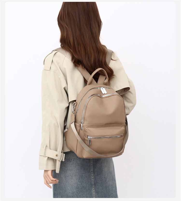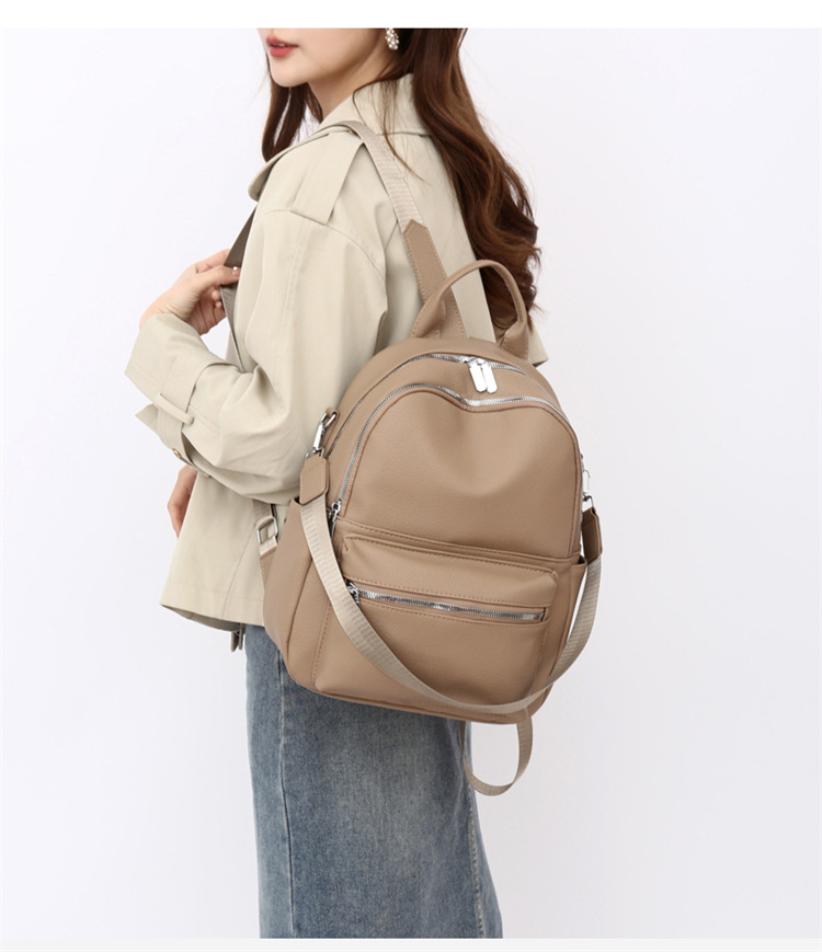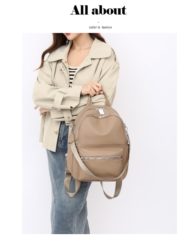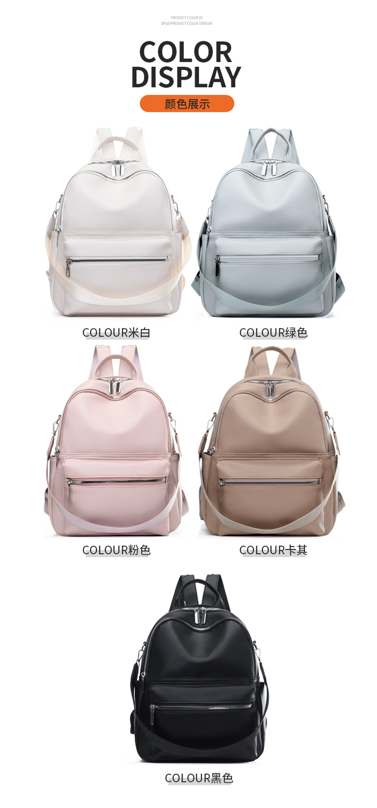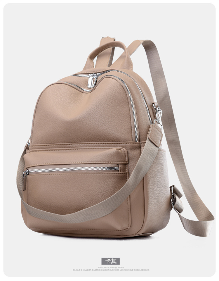 2024新型クロスボーダー多機能レディースリュックサックファッション純色pu革通勤カジュアルショルダーバッグ女性カバン