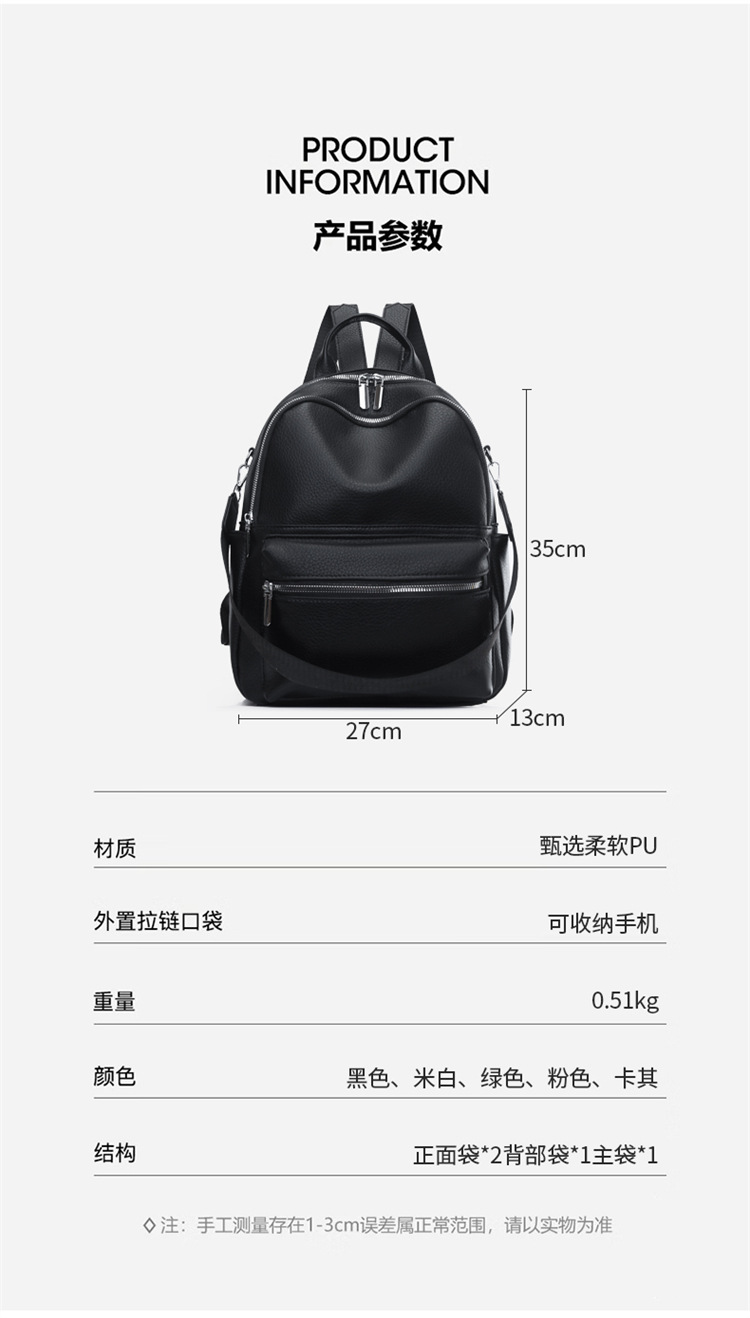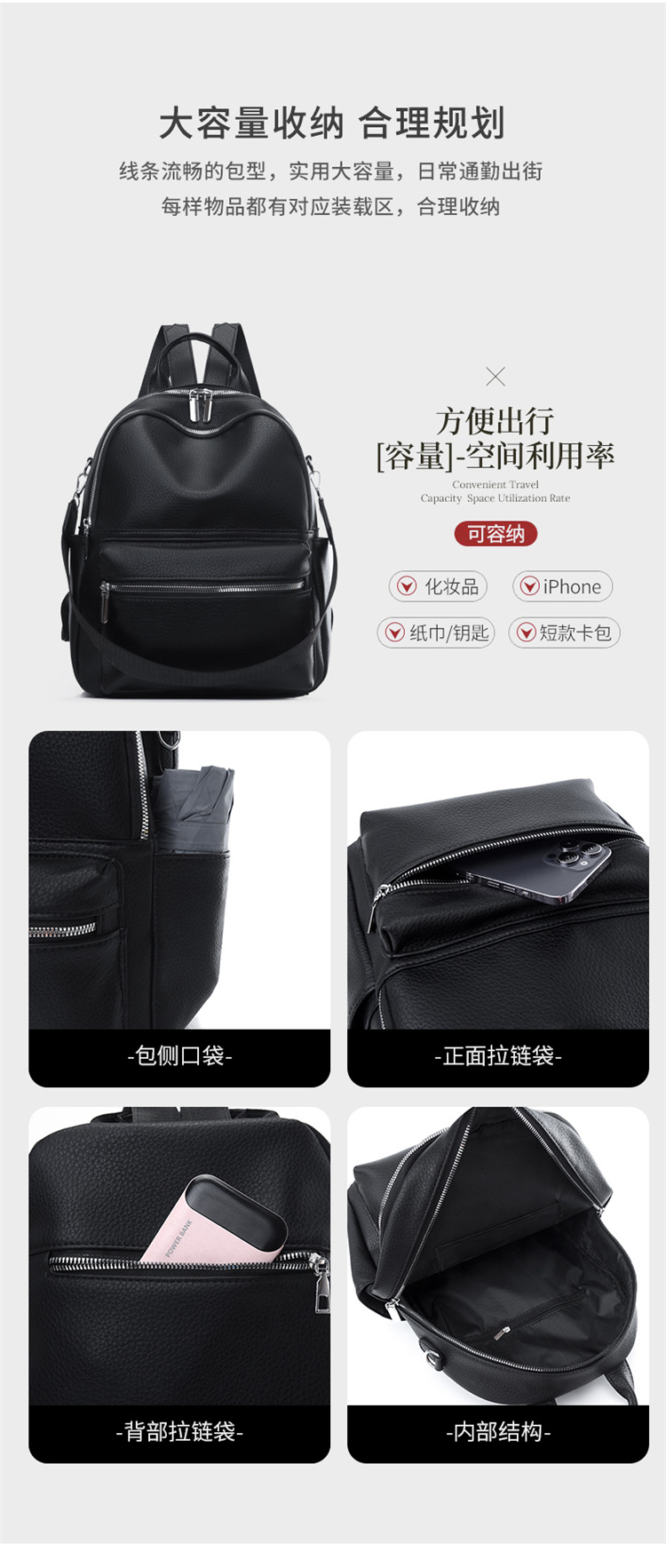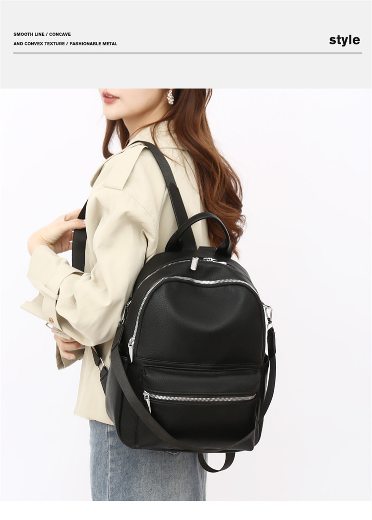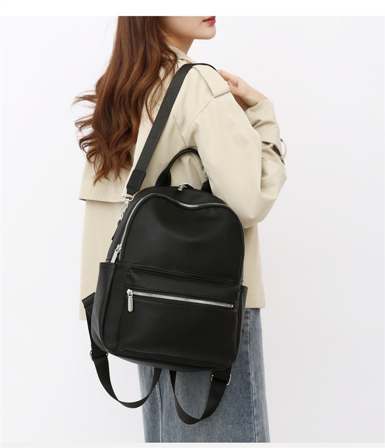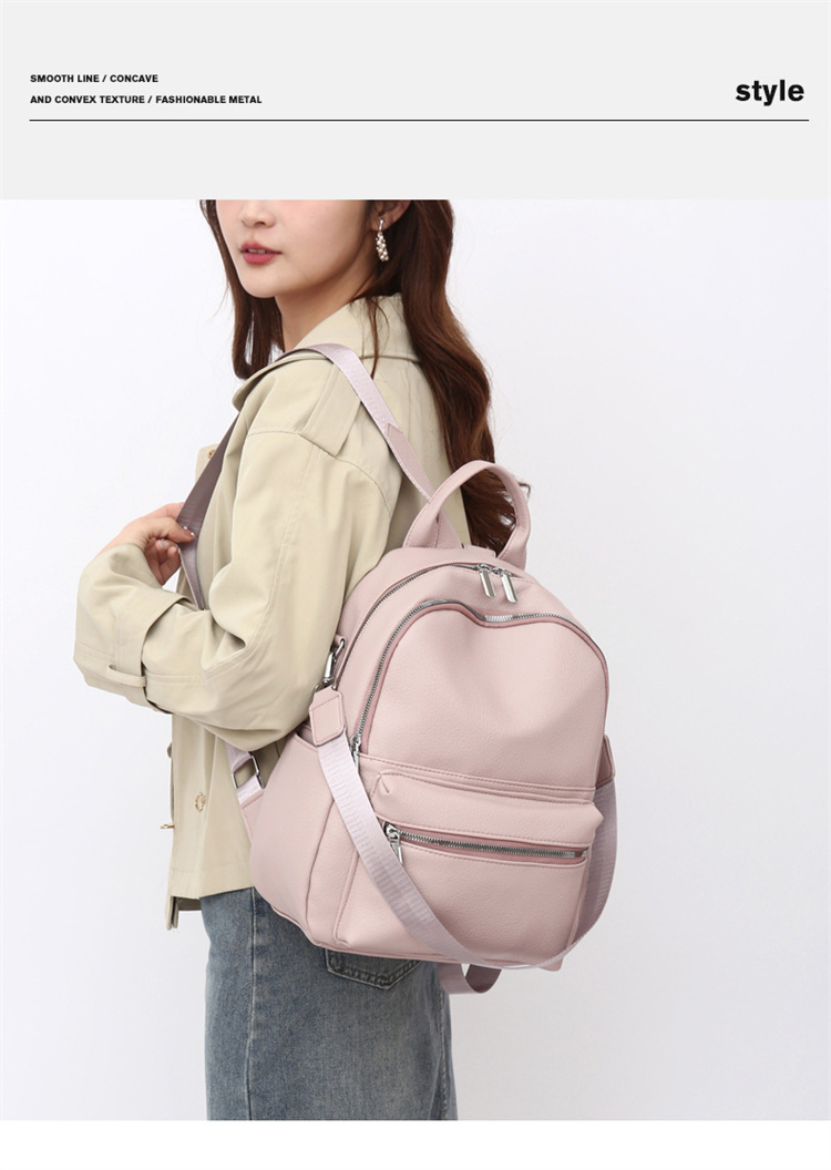 2024新型クロスボーダー多機能レディースリュックサックファッション純色pu革通勤カジュアルショルダーバッグ女性カバン