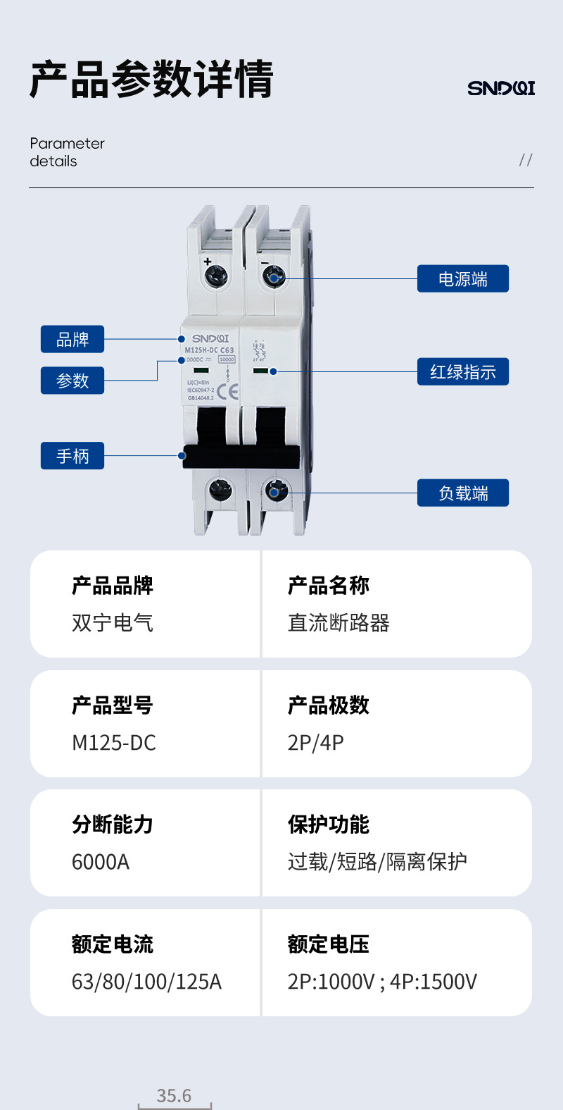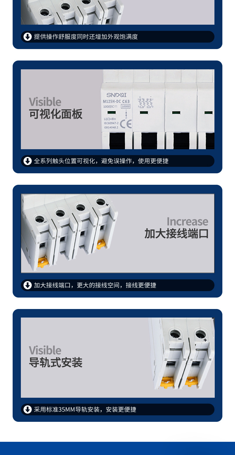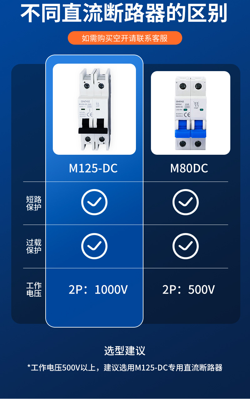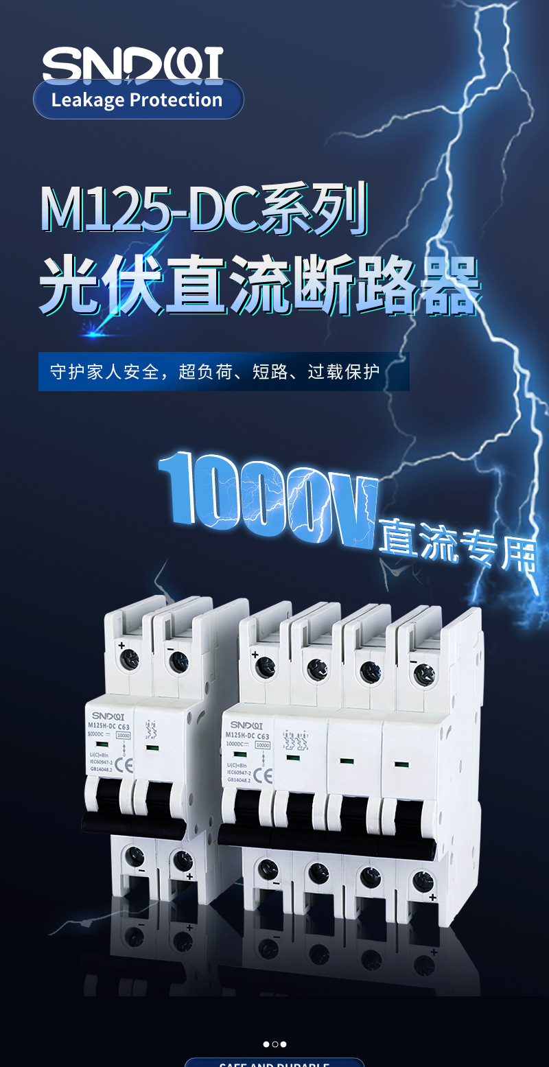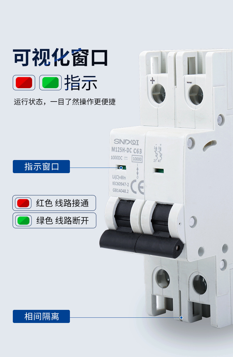 光起電力直流専用2P1000V直流無極性小型直流遮断器直流マイクロエアスイッチ