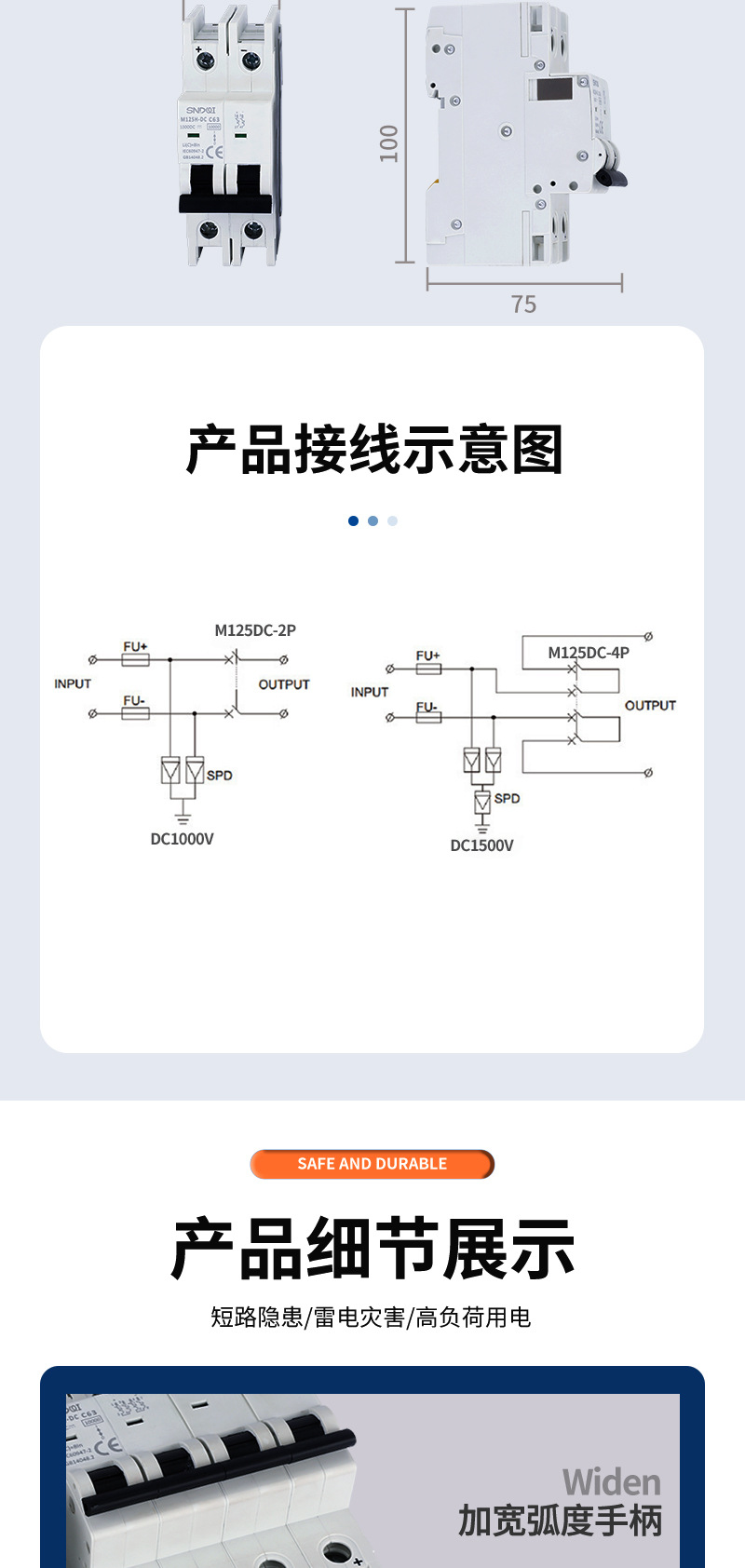 人気CE証直流マイクロ遮断器YRL7 125DC 125A80A太陽光発電は1000V空いている