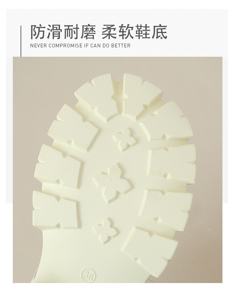 【关于细节】鞋子缝制的线头、小针孔、底边刷胶的胶印、轻微开胶、小脱线、轻微的小破皮、鞋子材料气味、不影响穿着的小褶皱、鞋底上的小孔洞、可安装的小配件脱落、轻微染色问题,请自行处理。不属于质量问题哦,与图片微小不符属于正常,请以实物为准,介意勿拍!