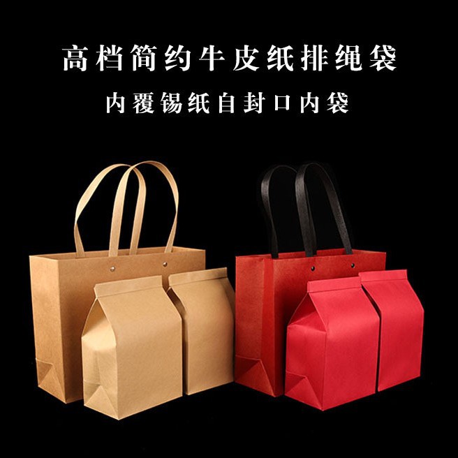 汎用茶葉包装袋クラフト紙針金自封口赤い手提げ袋プーアル白茶散茶袋セット
