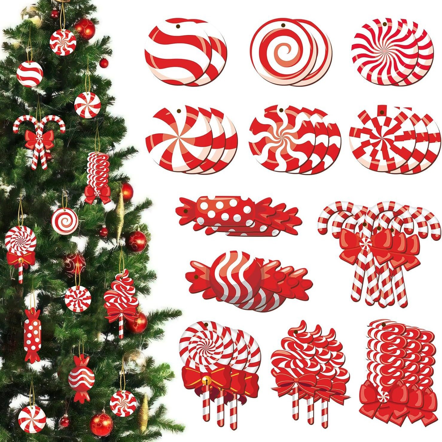 红色木制挂饰薄荷糖果手杖棒棒糖吊坠适用于圣诞树家庭派对装饰