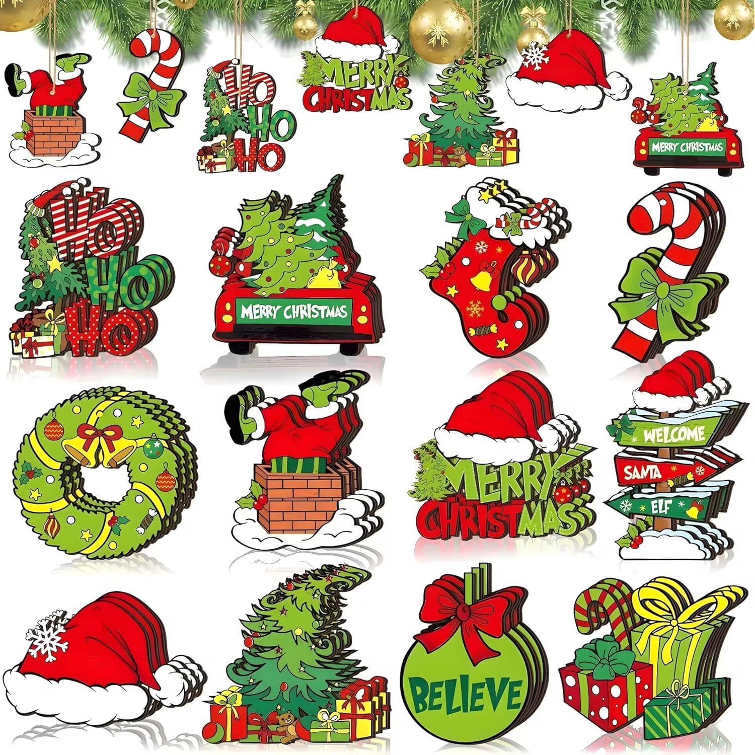 クリスマスツリーの装飾 - 木製クリスマスツリーハンギングオーナメントホリデークリスマスオーナメントクリスマスデコレーションインテリアデコレーション
