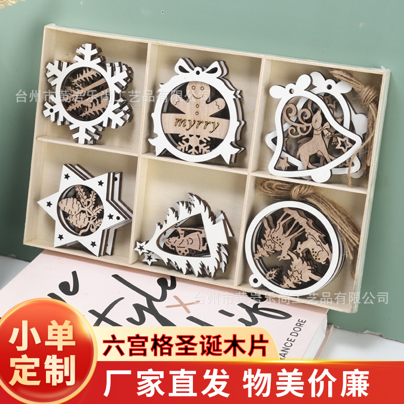 24年クリスマス装飾木箱ヘラジカ雪だるまクリスマスツリーペンダントクロスボーダー木製雰囲気ペンダント