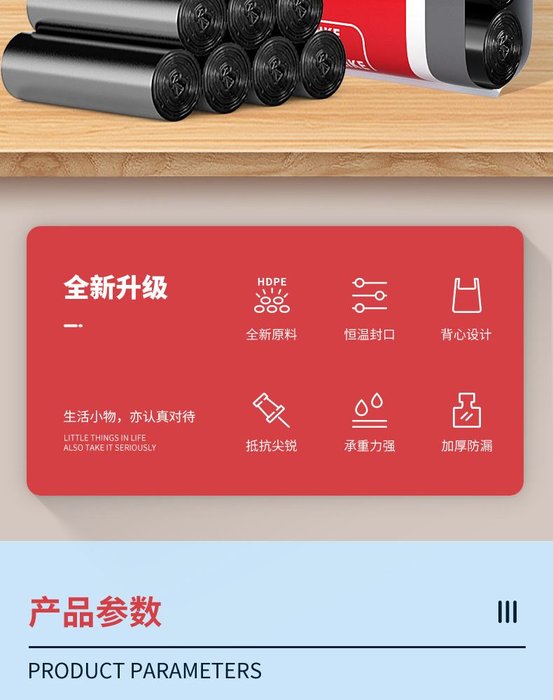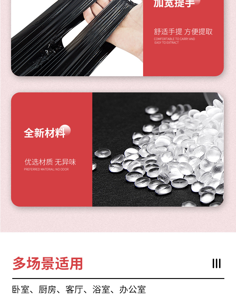 Sodolike背心垃圾袋家用加厚不易破手提式实惠装黑色塑料袋子批发