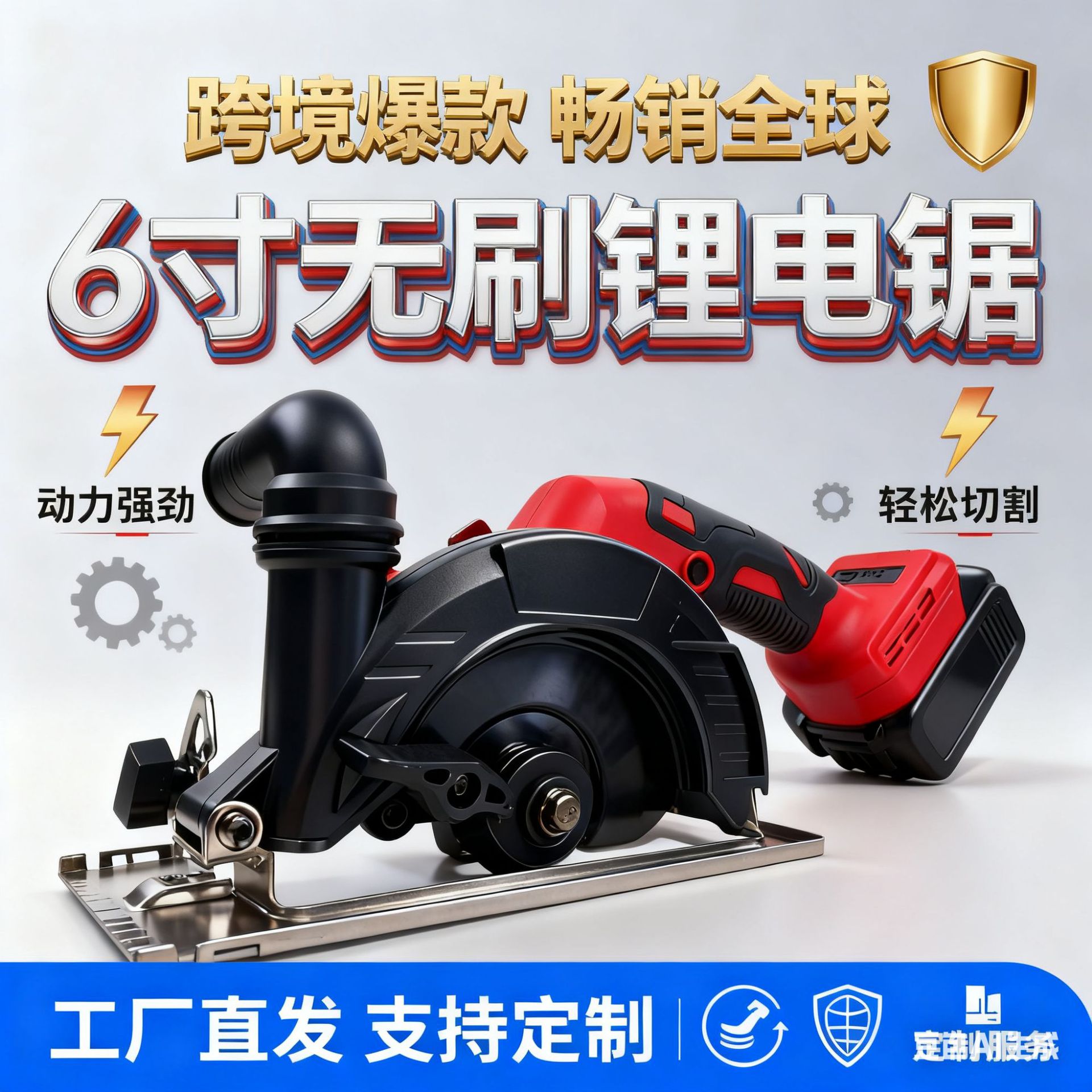 高功率工业级纯铜无刷6寸电圆锯锂电充电木工手提锯切割机圆盘锯