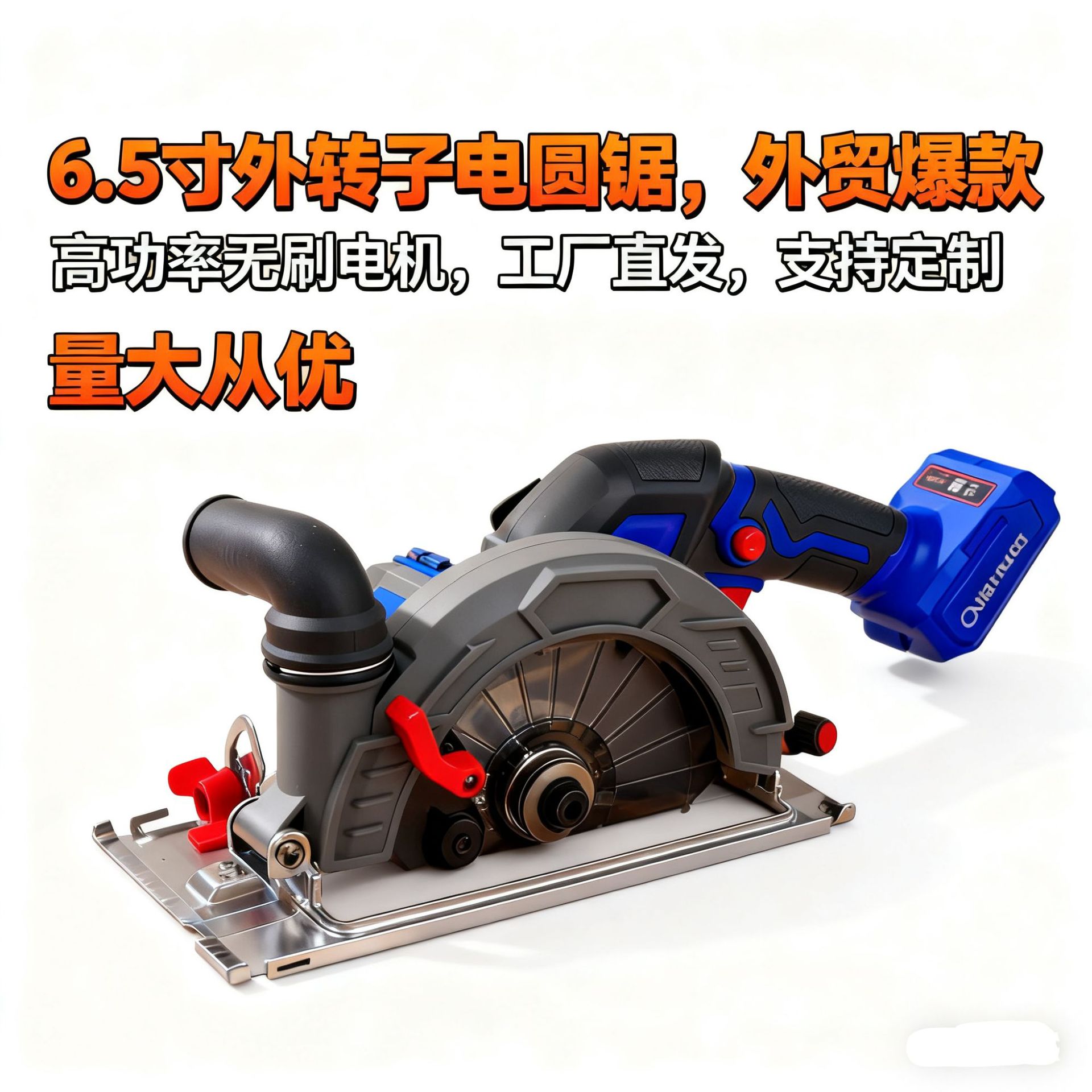 6.5寸外转子工业级纯铜无刷电圆锯锂电充电木工手提锯云石切割机