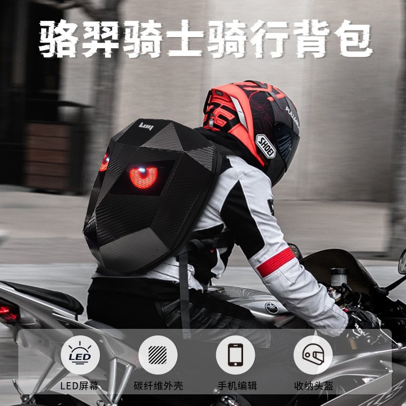 LOY騎士LEDバイクバックパックアイズオートバイライディングフルフェイスヘルメットカーボンファイバーテクスチャDIYバッグライダー
