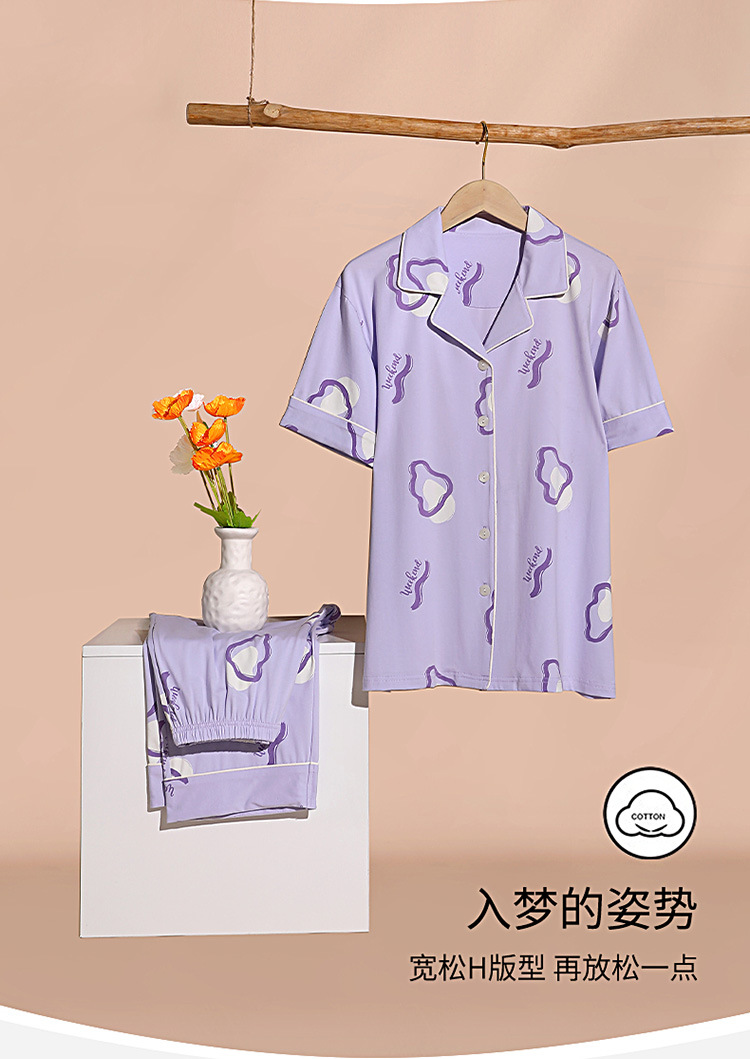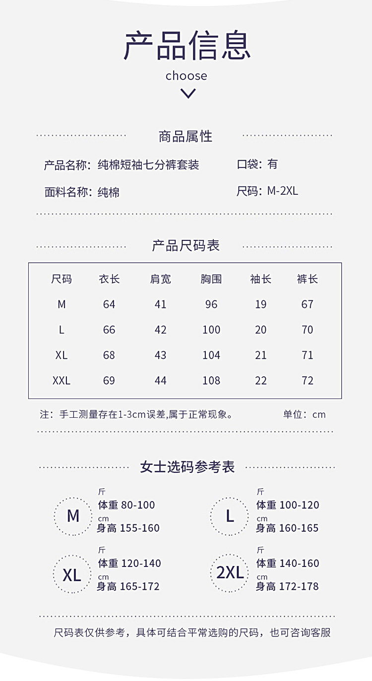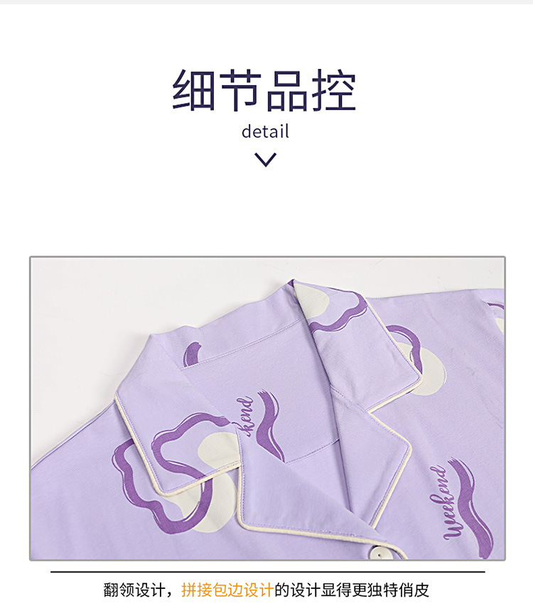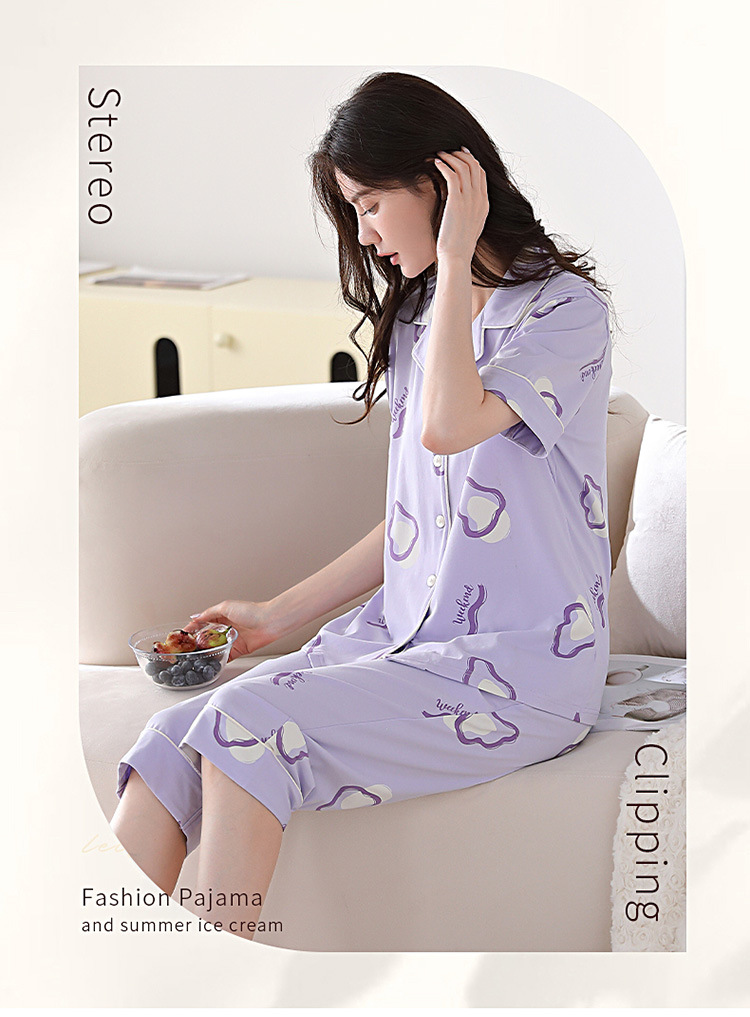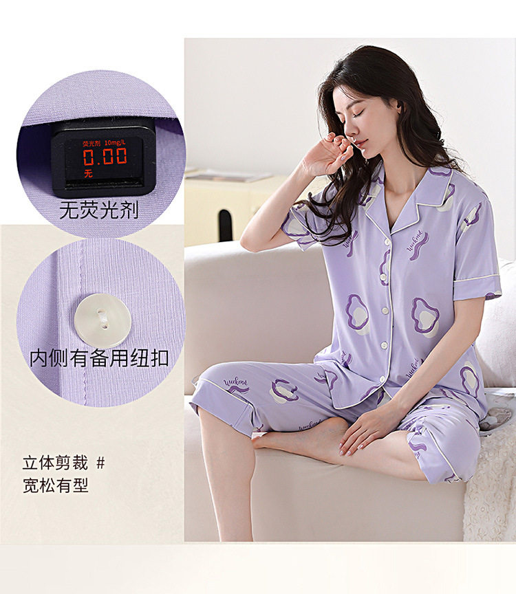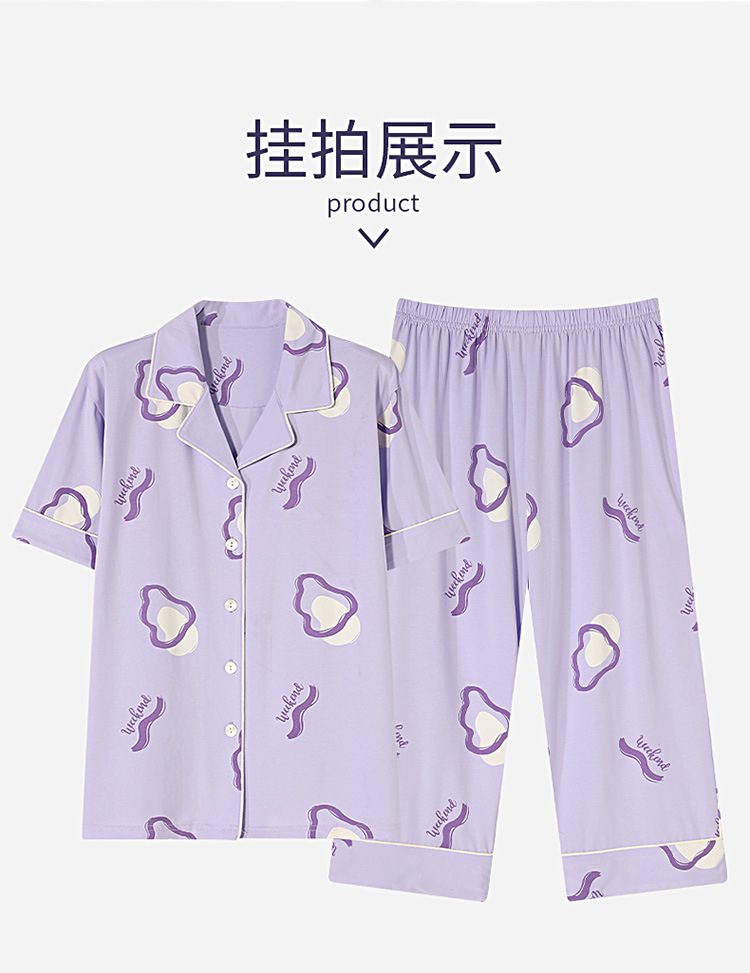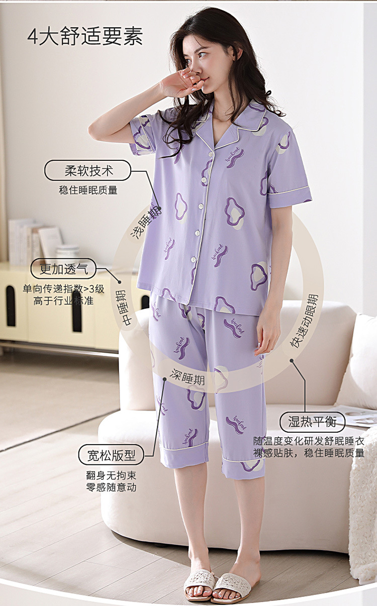 新商品の純綿女性パジャマ夏の薄い半袖七分ズボン少女のゆったりとした薄い家庭服の中ズボンセット