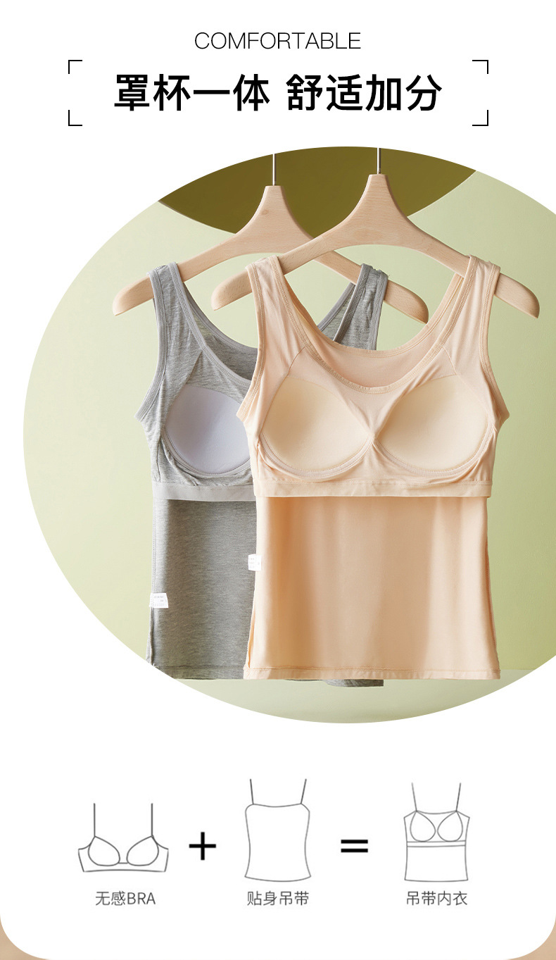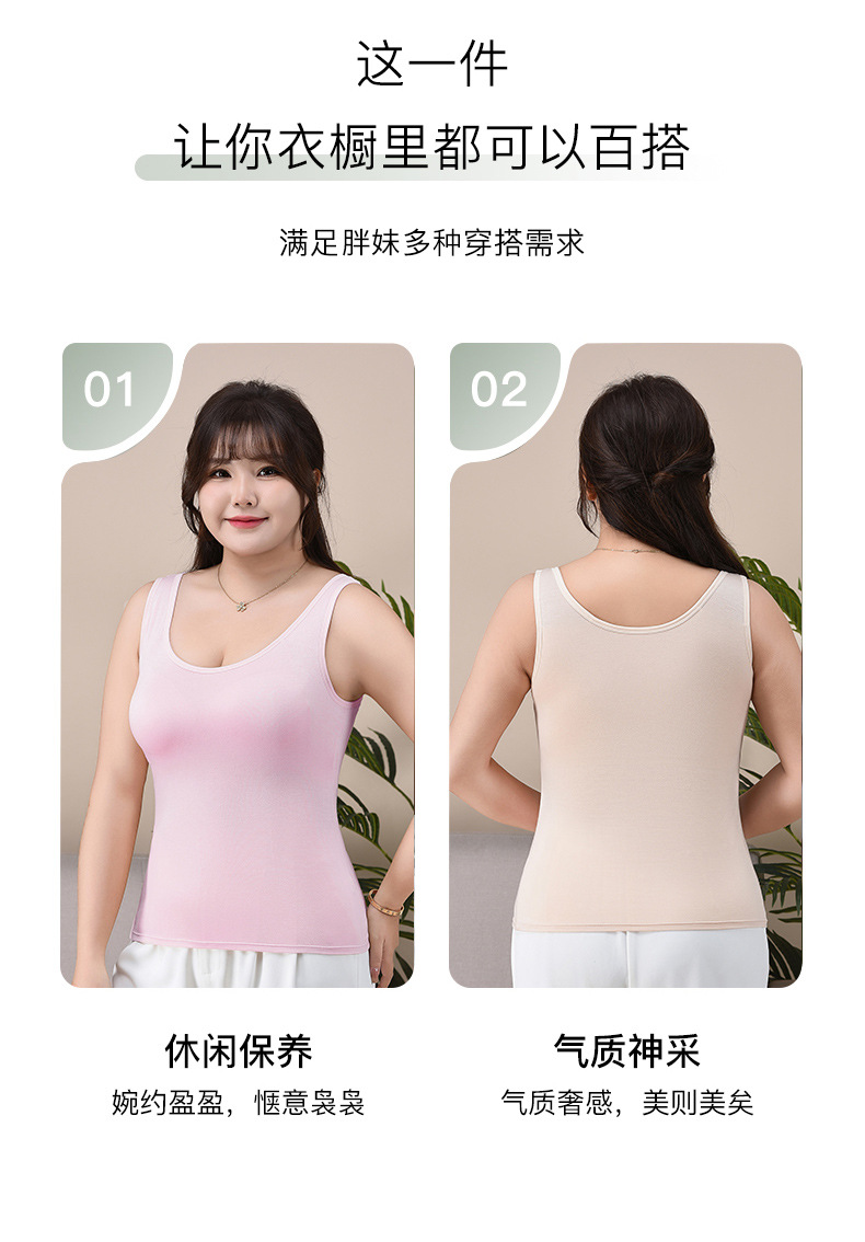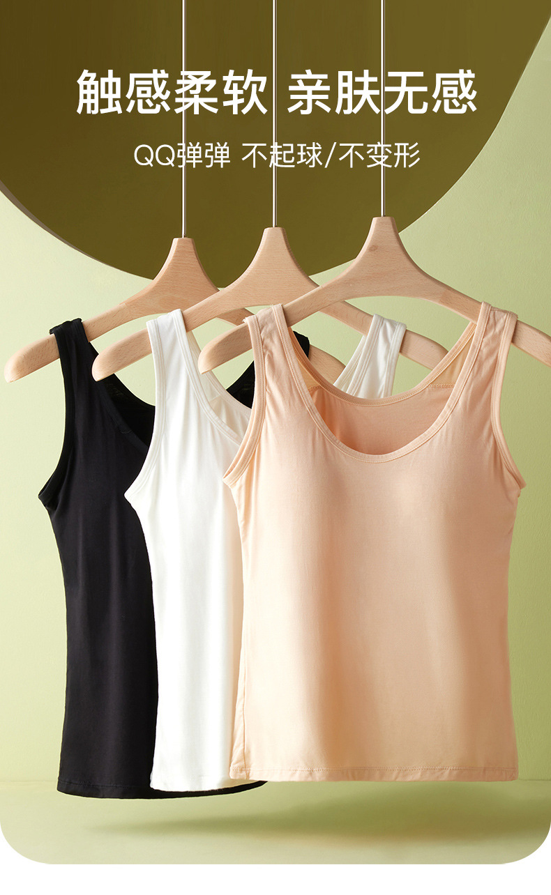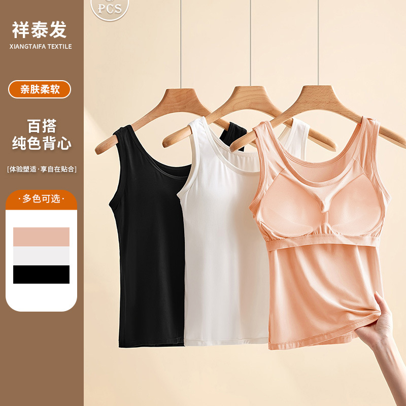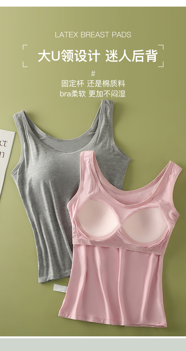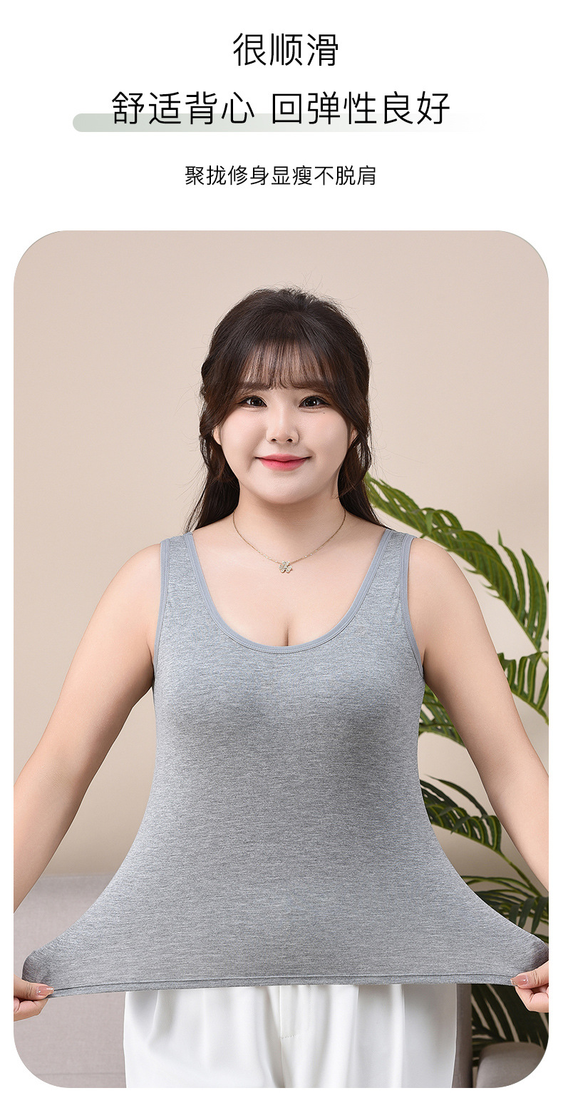 モダール素材のレディース一体型カップ付きタンクトップ、体型カバー、大きいサイズ、学生向け、シンプルで万能、着痩せ効果あり