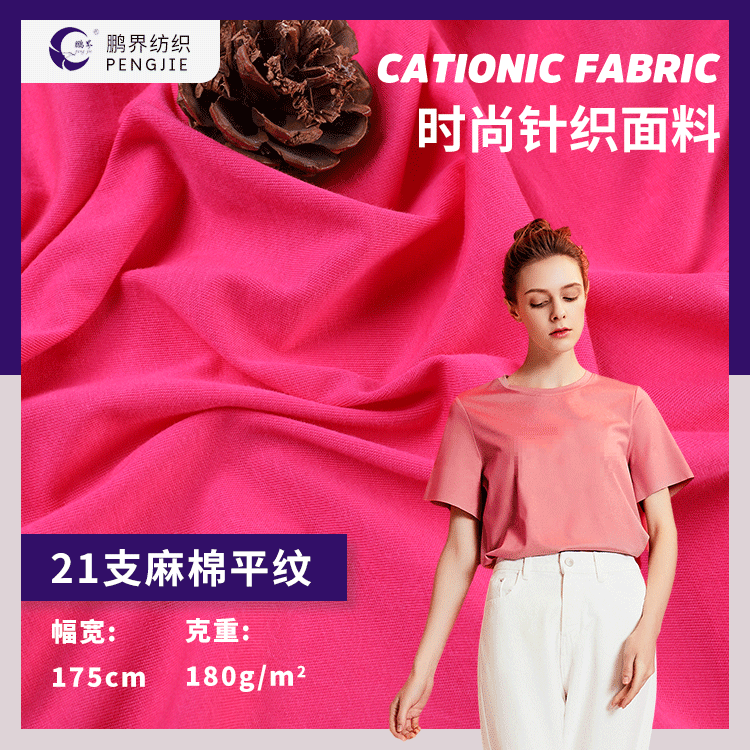 21番手麻綿混紡平織り汗取り綿片面生地180gニット綿100%Tシャツ生地半袖純綿快適